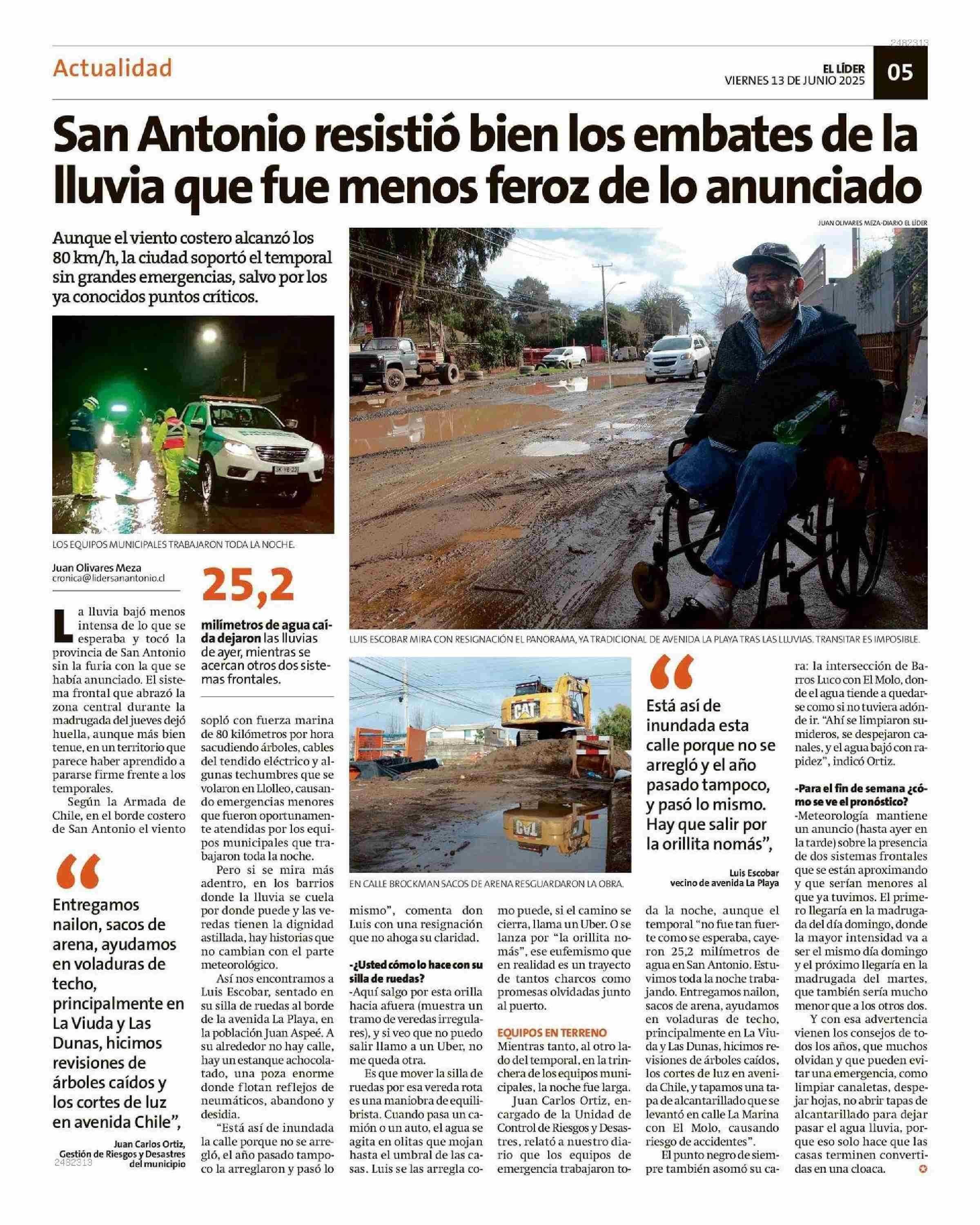 San Antonio resistió bien los embates de la lluvia que fue menos feroz de lo anunciado 13-06-2025 El Líder |