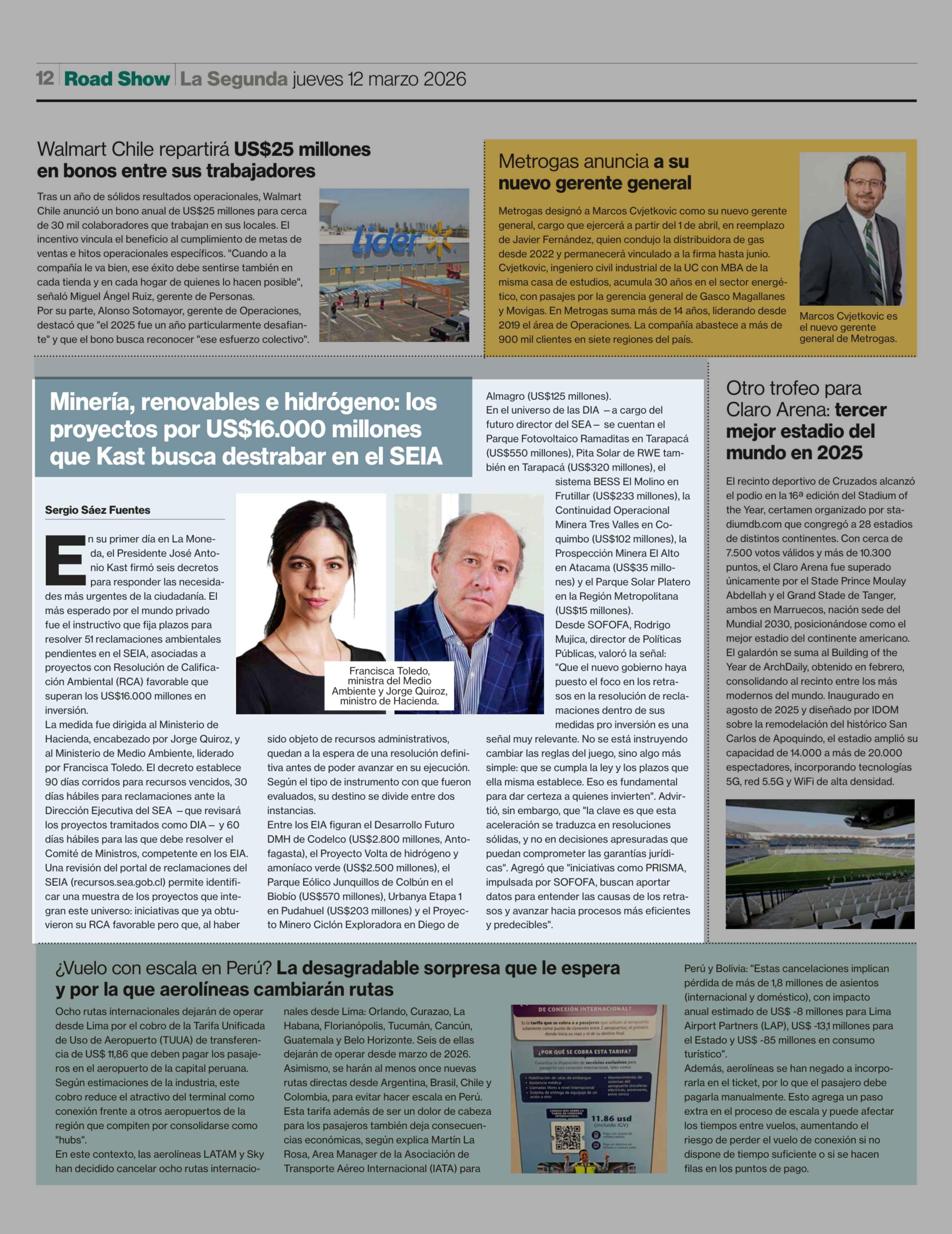 Minería, renovables e hidrógeno: los proyectos por US$16.000 millones que Kast busca destrabar en el SEIA 12-03-2026 La Segunda |