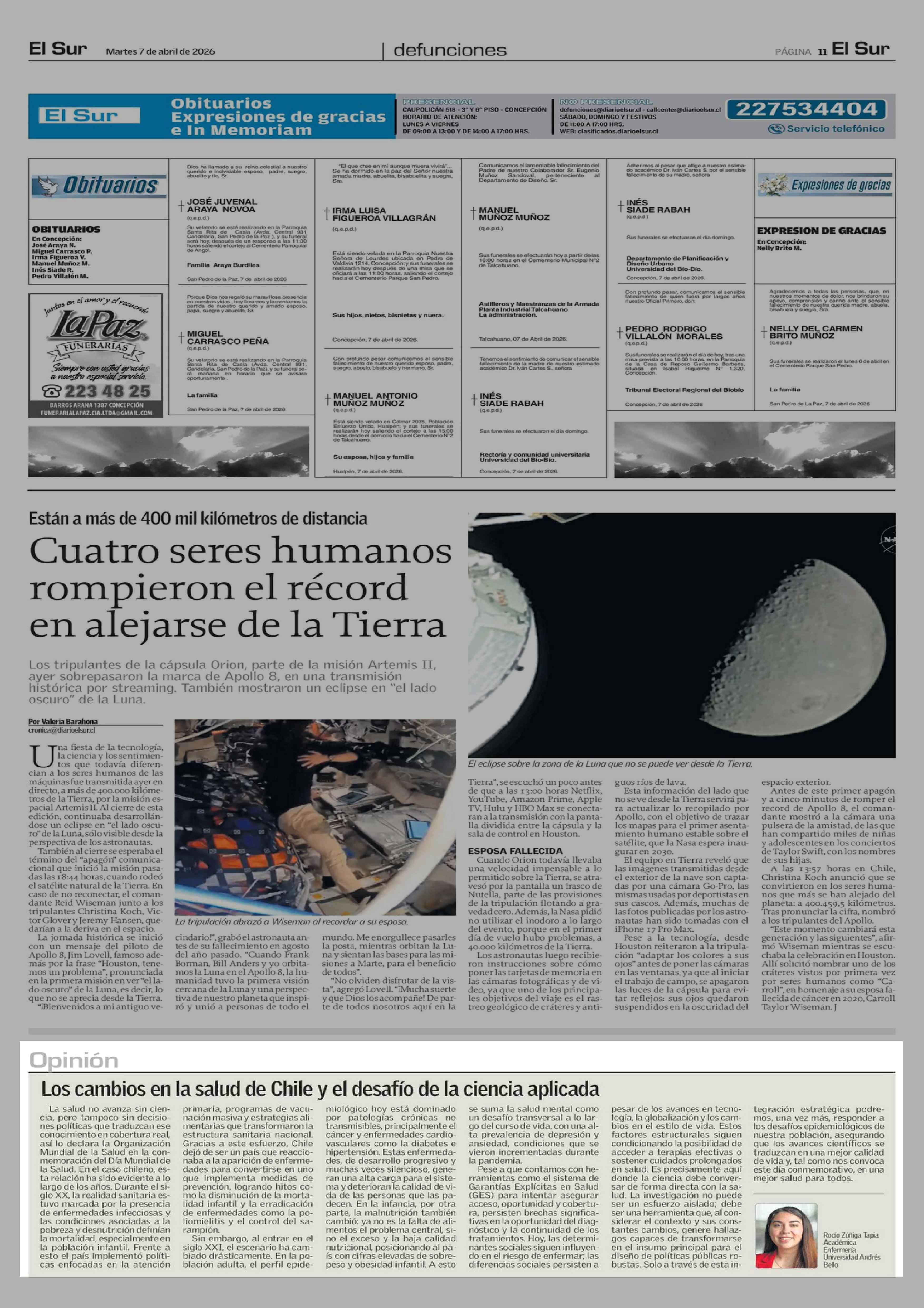 Columnas de Opinión: Los cambios en la salud de Chile y el desafío de la ciencia aplicada 07-04-2026 El Sur |