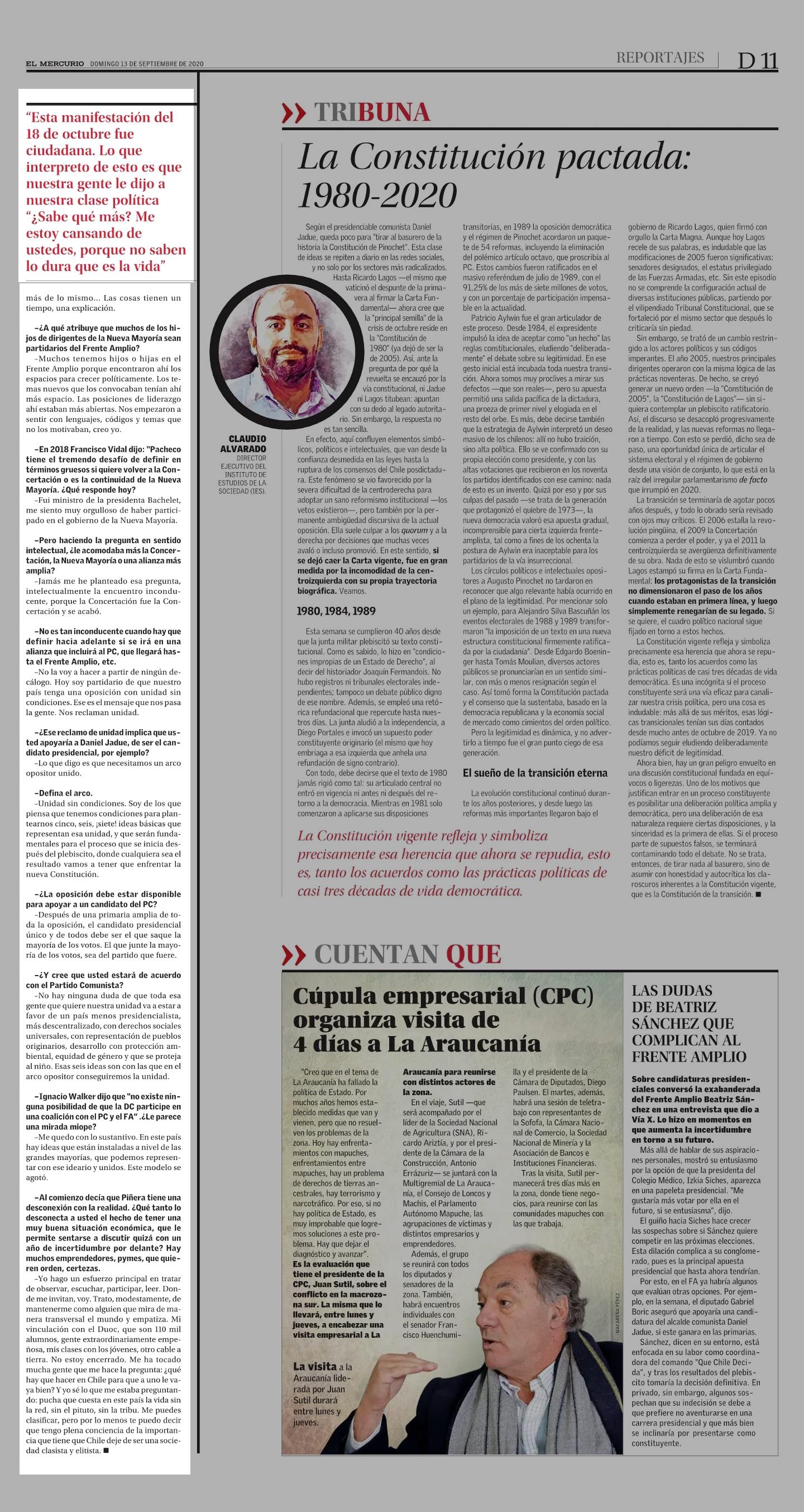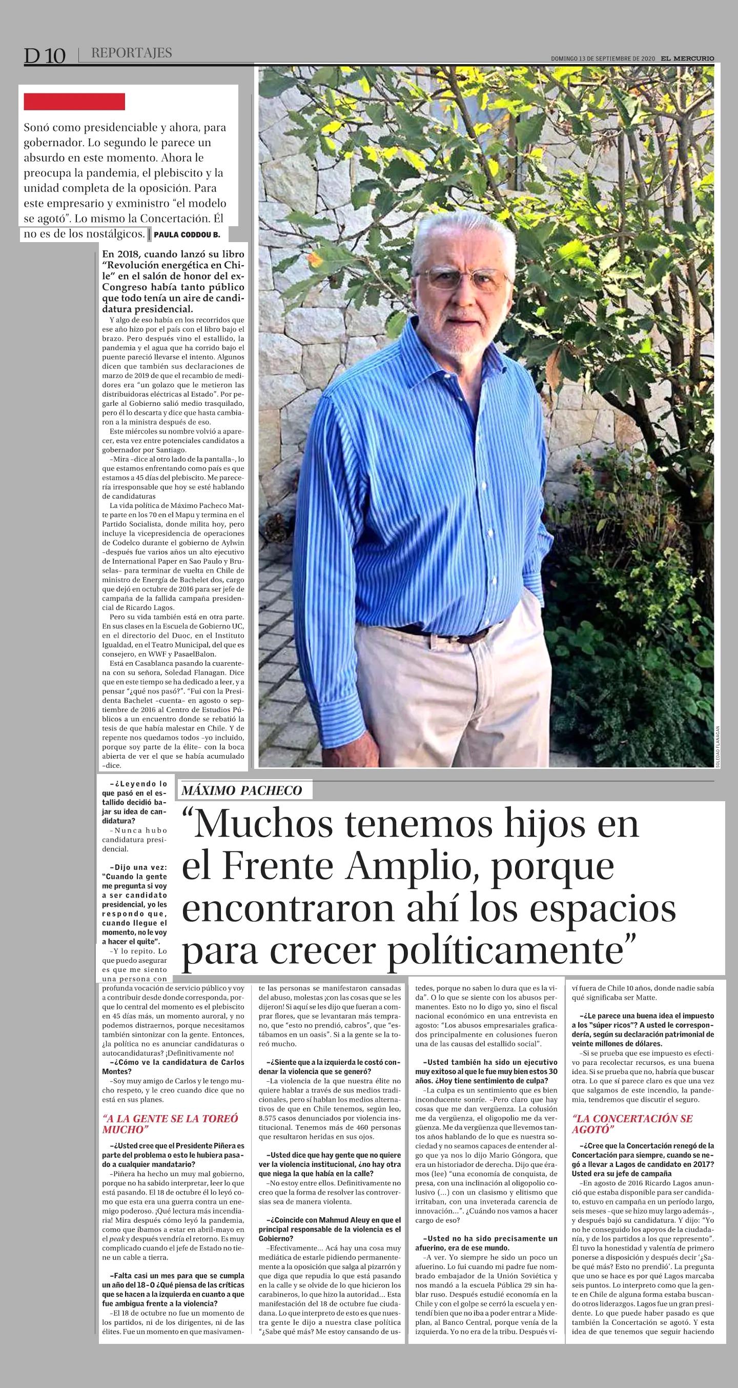 “Muchos tenemos hijos en el Frente Amplio, porque encontraron ahí los espacios para crecer políticamente” 13-09-2020 El Mercurio |
