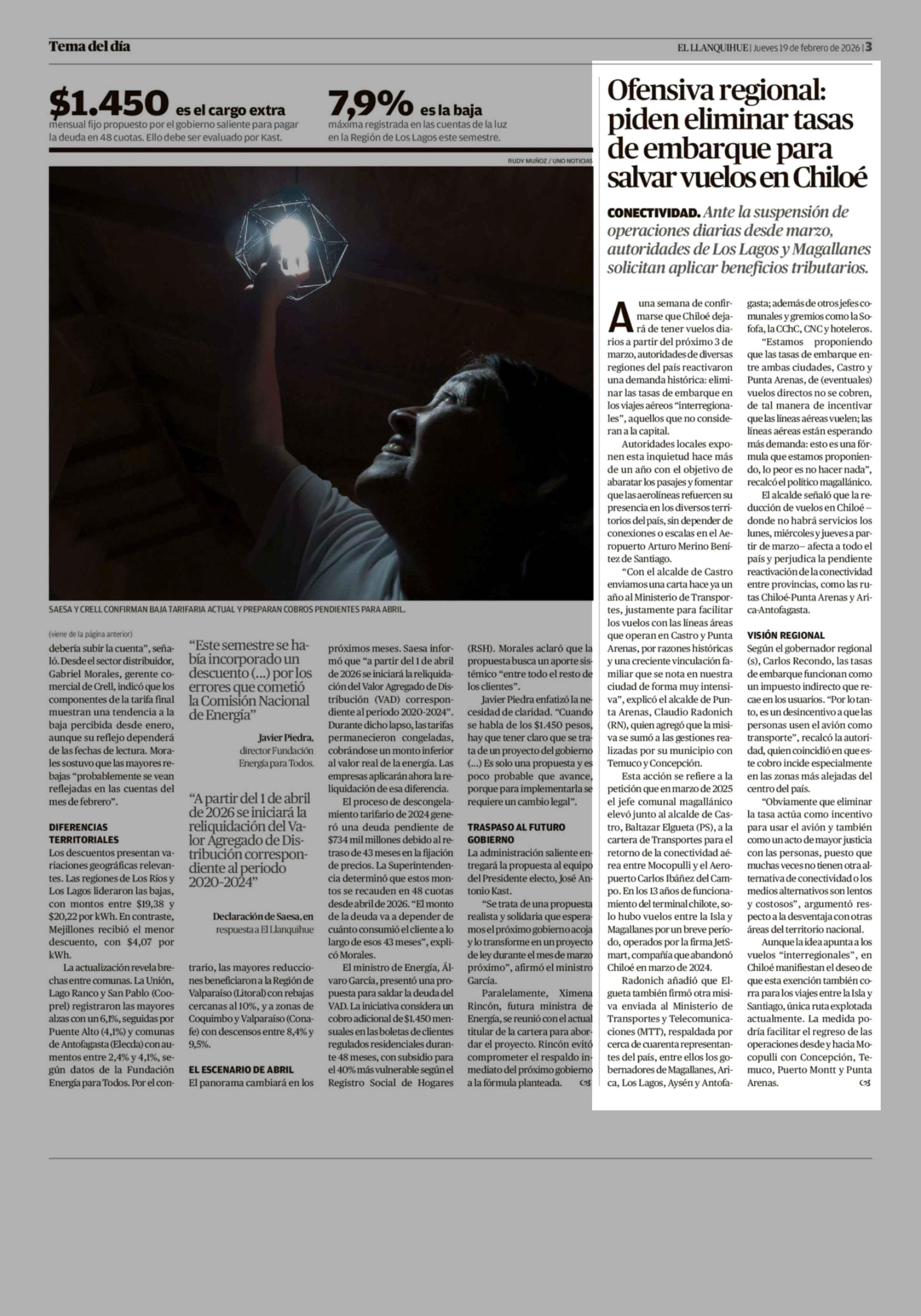 Título: Ofensiva regional: piden eliminar tasas de embarque para salvar vuelos en Chiloé