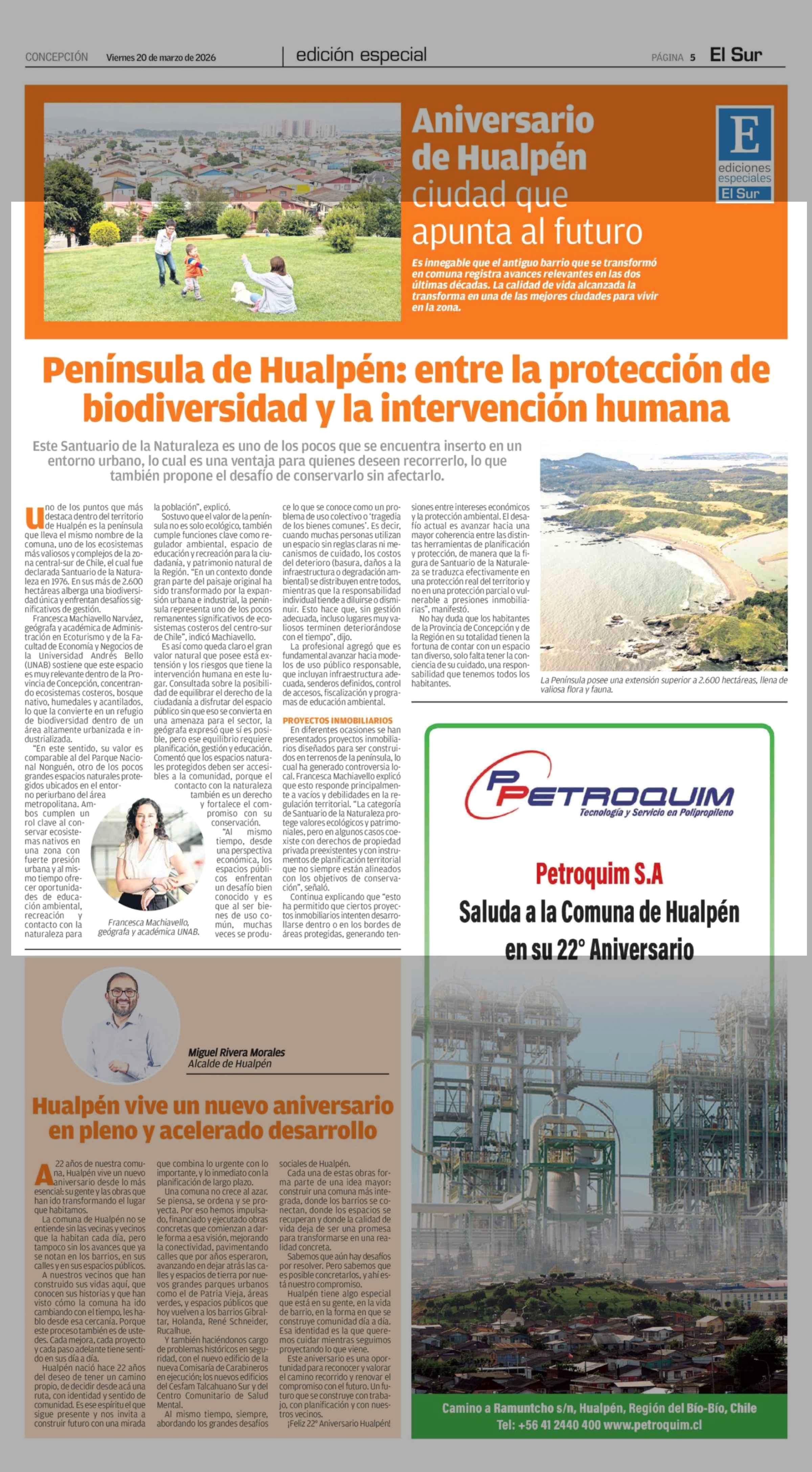 Título: Península de Hualpén: entre la protección de biodiversidad y la intervención humana