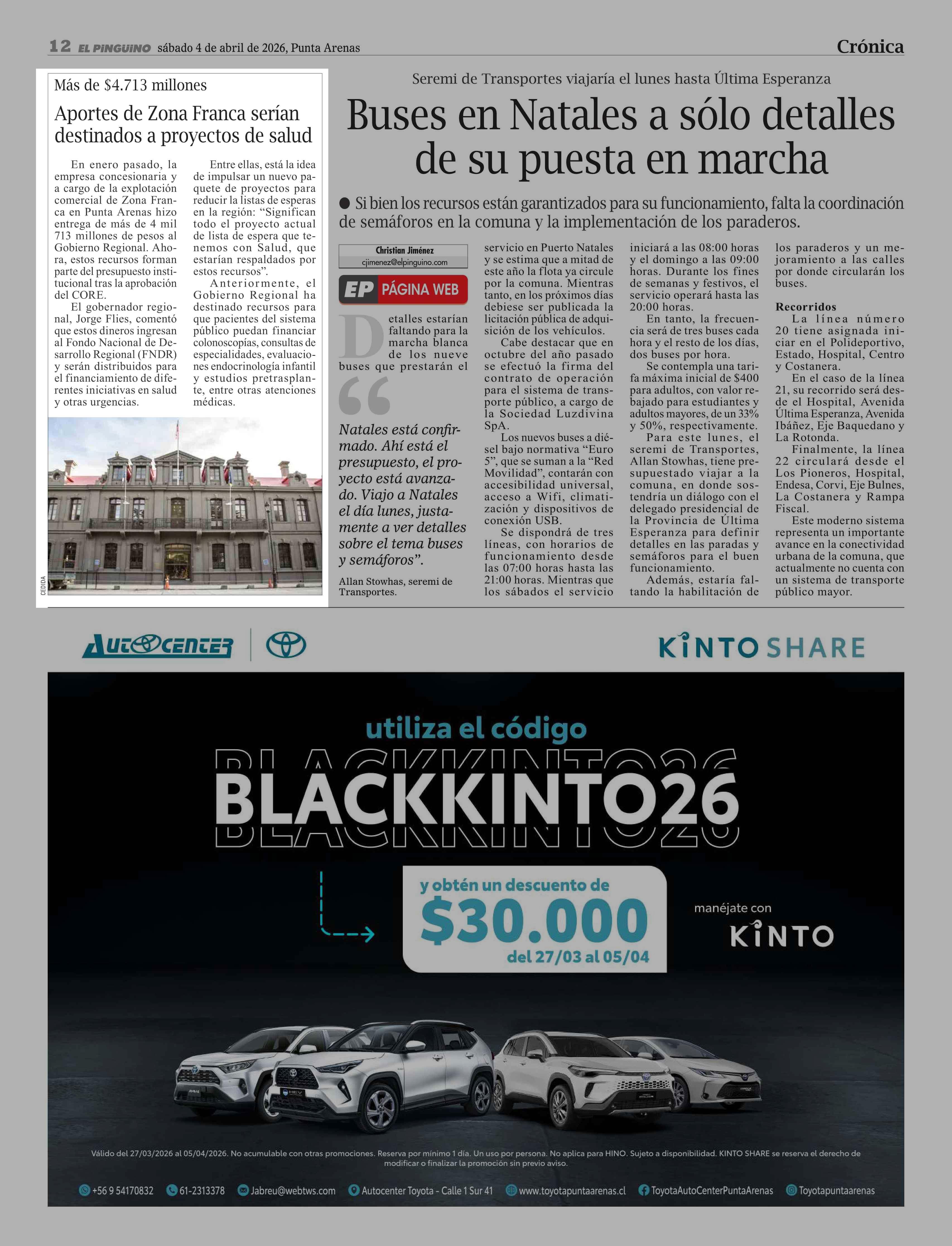 Fecha: 04-04-2026 Sector: Noticia general Región: Región de Magallanes y de la Antártica Chilena