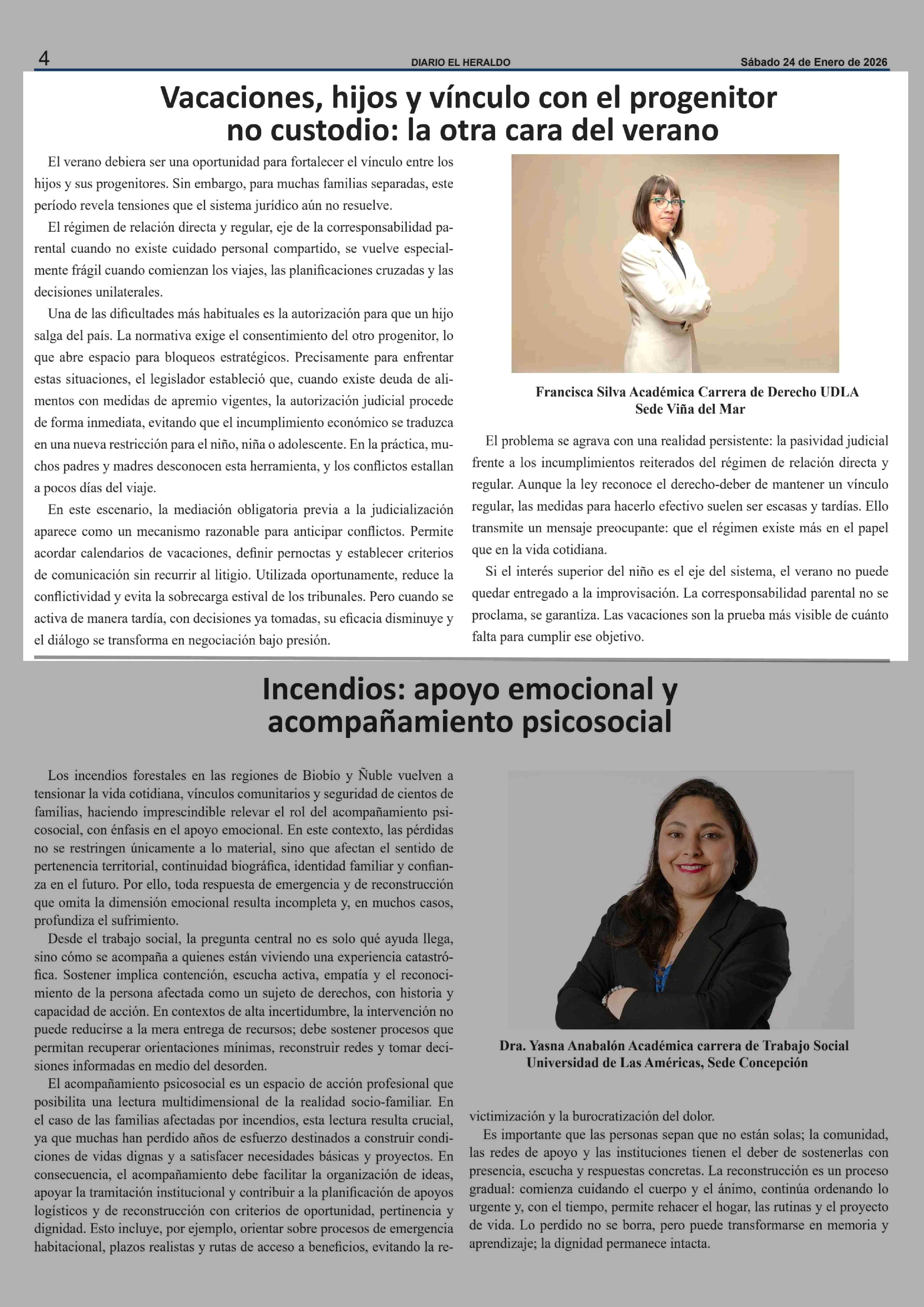 Columnas de Opinión: Vacaciones, hijos y vínculo con el progenitor no custodio: la otra cara del verano 24-01-2026 El Heraldo |