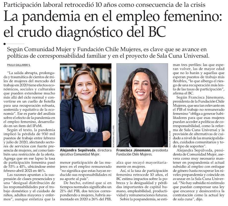 La pandemia en el empleo femenino: el crudo diagnóstico del BC 10-06-2021 El Mercurio |