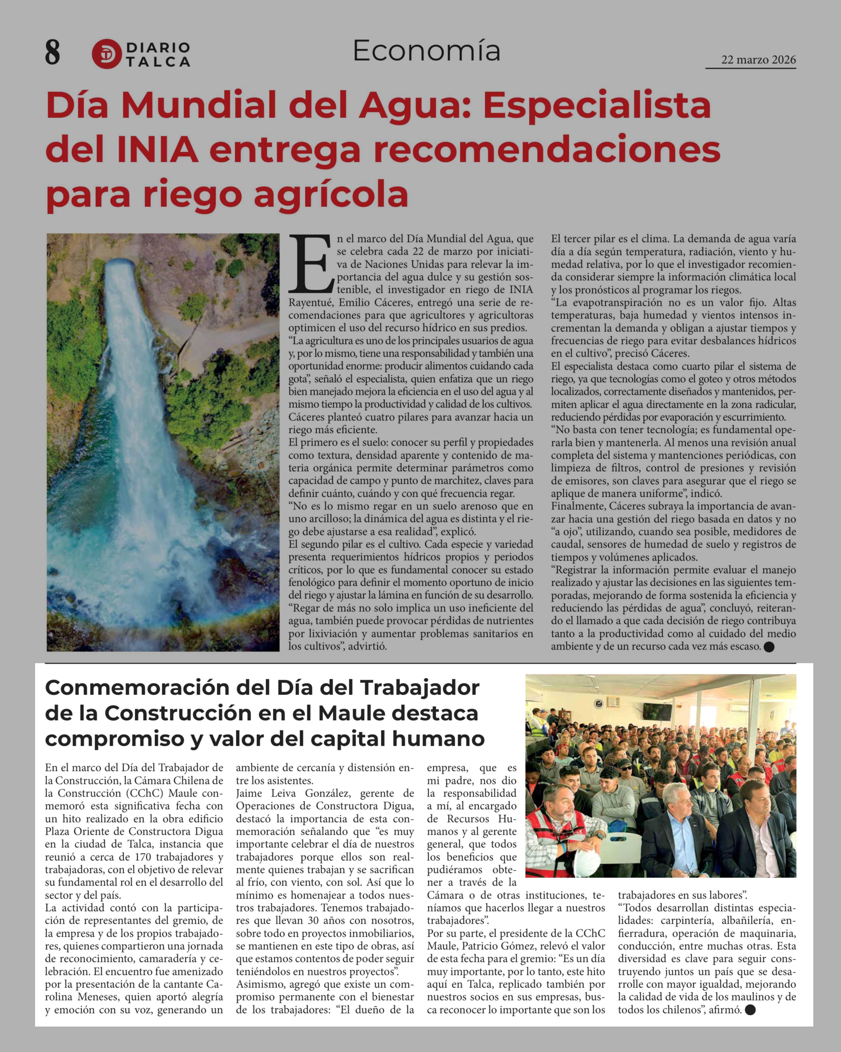 Conmemoración del Día del Trabajador de la Construcción en el Maule destaca compromiso y valor del capital humano 22-03-2026 Diario Talca |