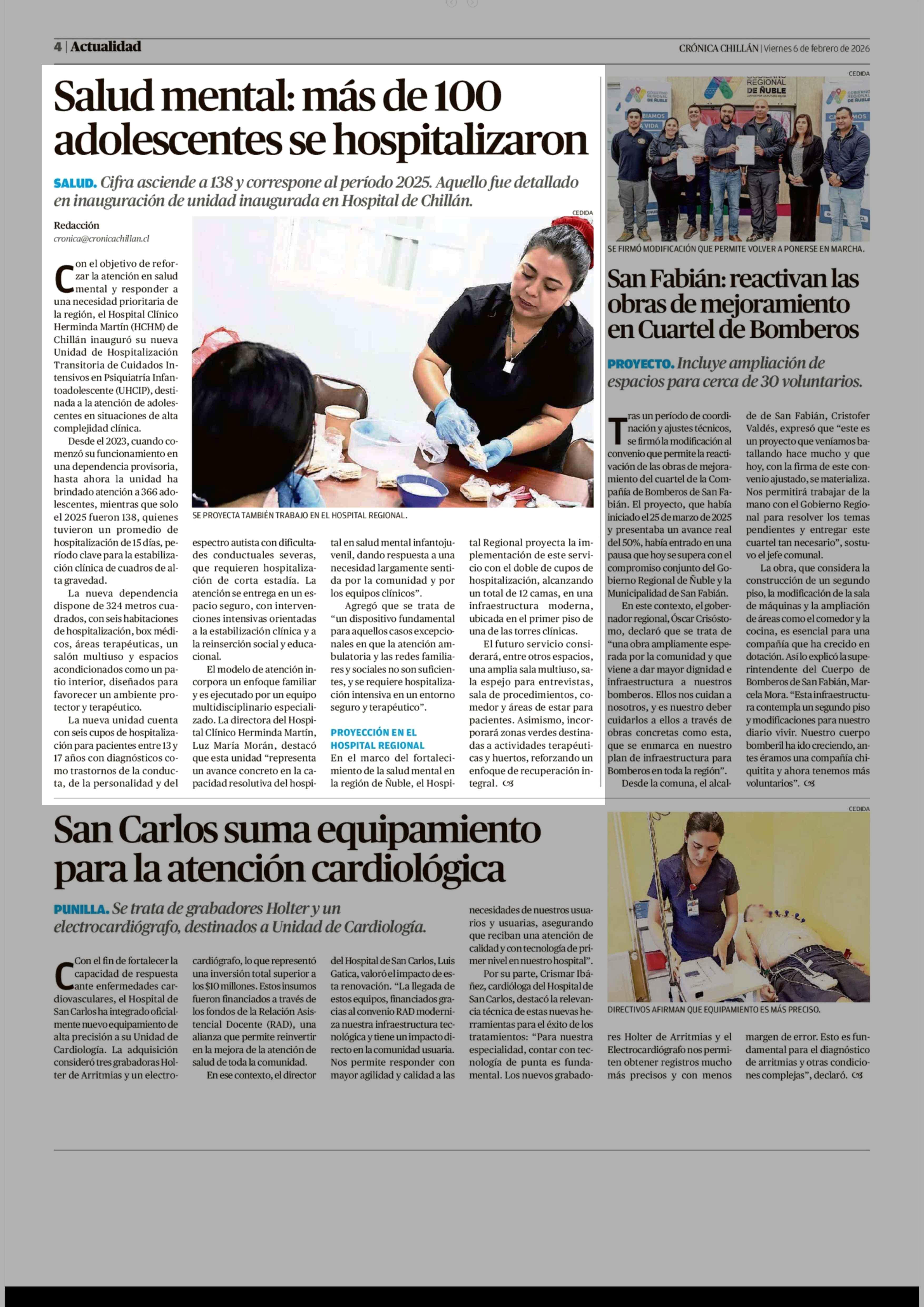 Salud mental: más de 100 adolescentes se hospitalizaron 06-02-2026 Crónica de Chillán |