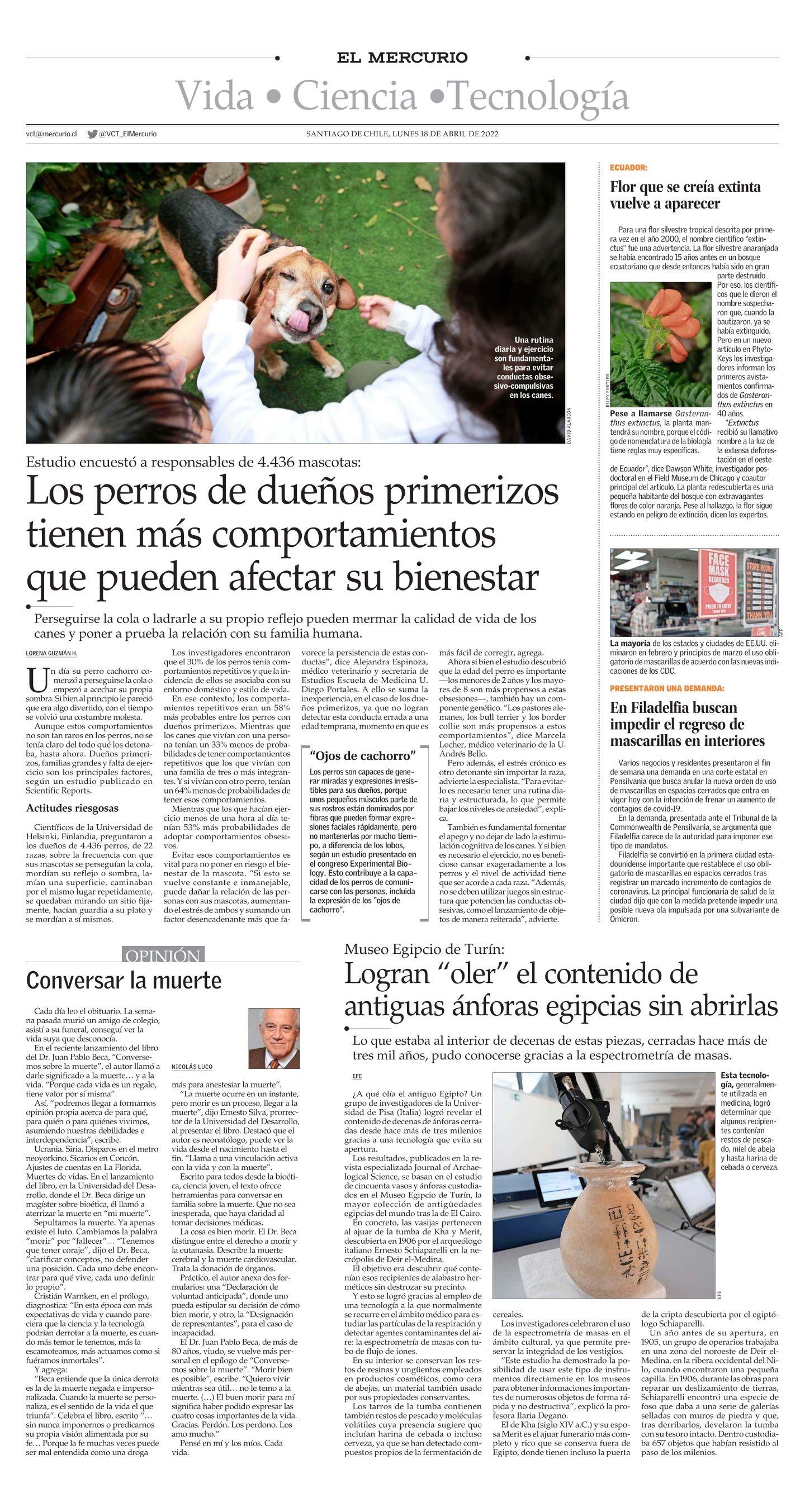 Los perros de dueños primerizos tienen más comportamientos que pueden afectar su bienestar 18-04-2022 El Mercurio |