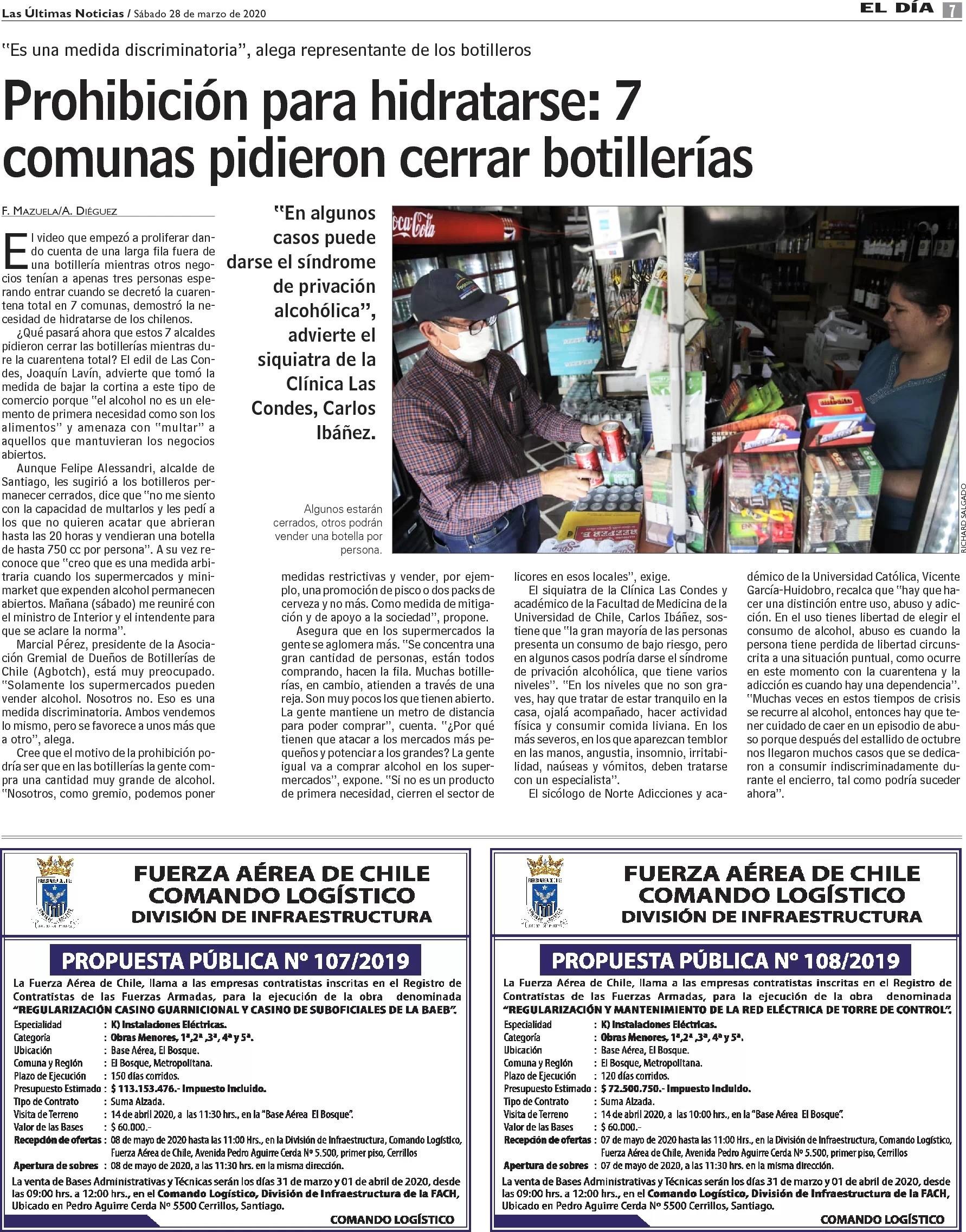Prohibición para hidratarse: 7 comunas pidieron cerrar botillerías 28-03-2020 Las Últimas Noticias |