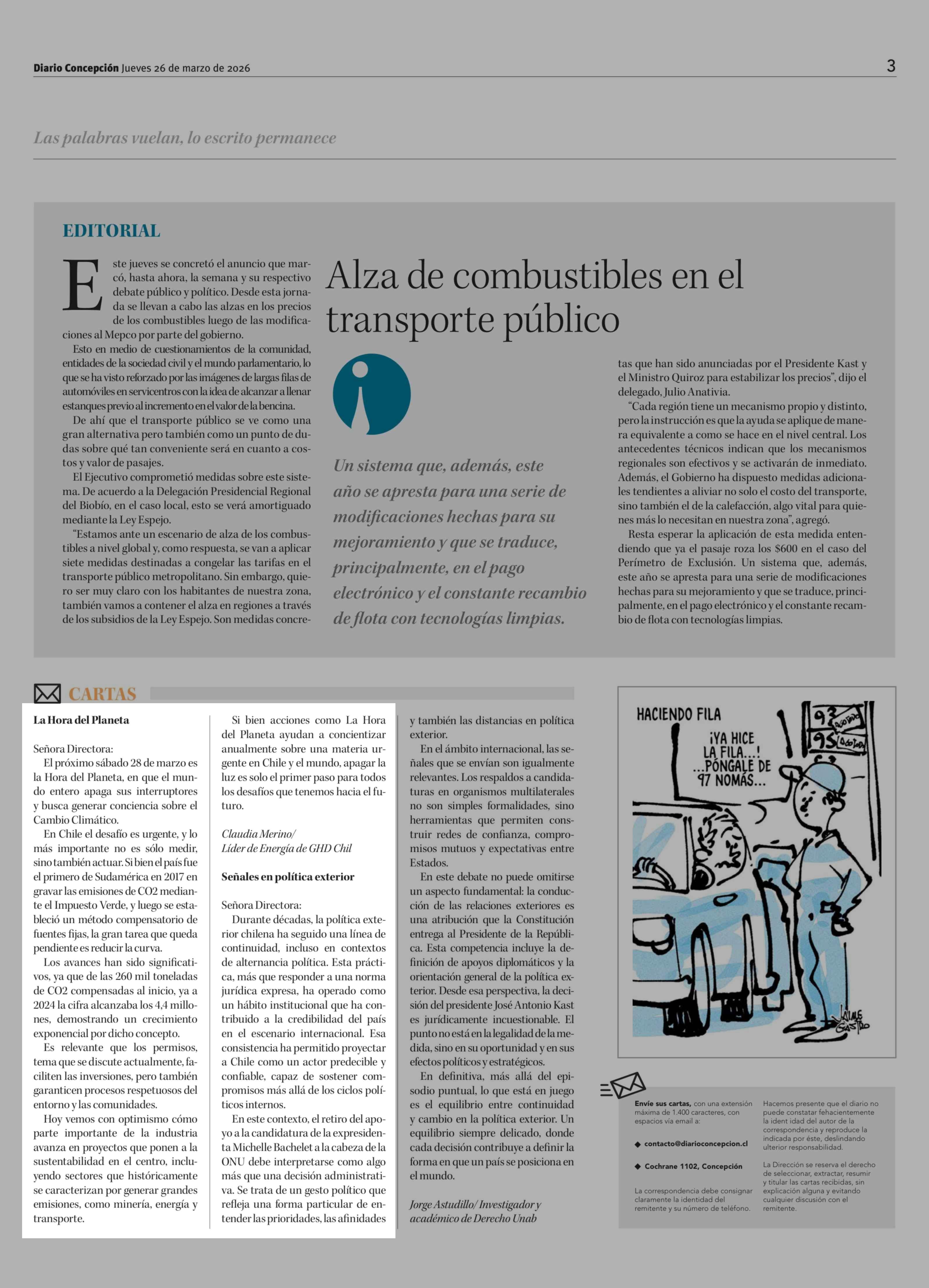 Cartas: La Hora del Planeta 26-03-2026 Diario Concepción |