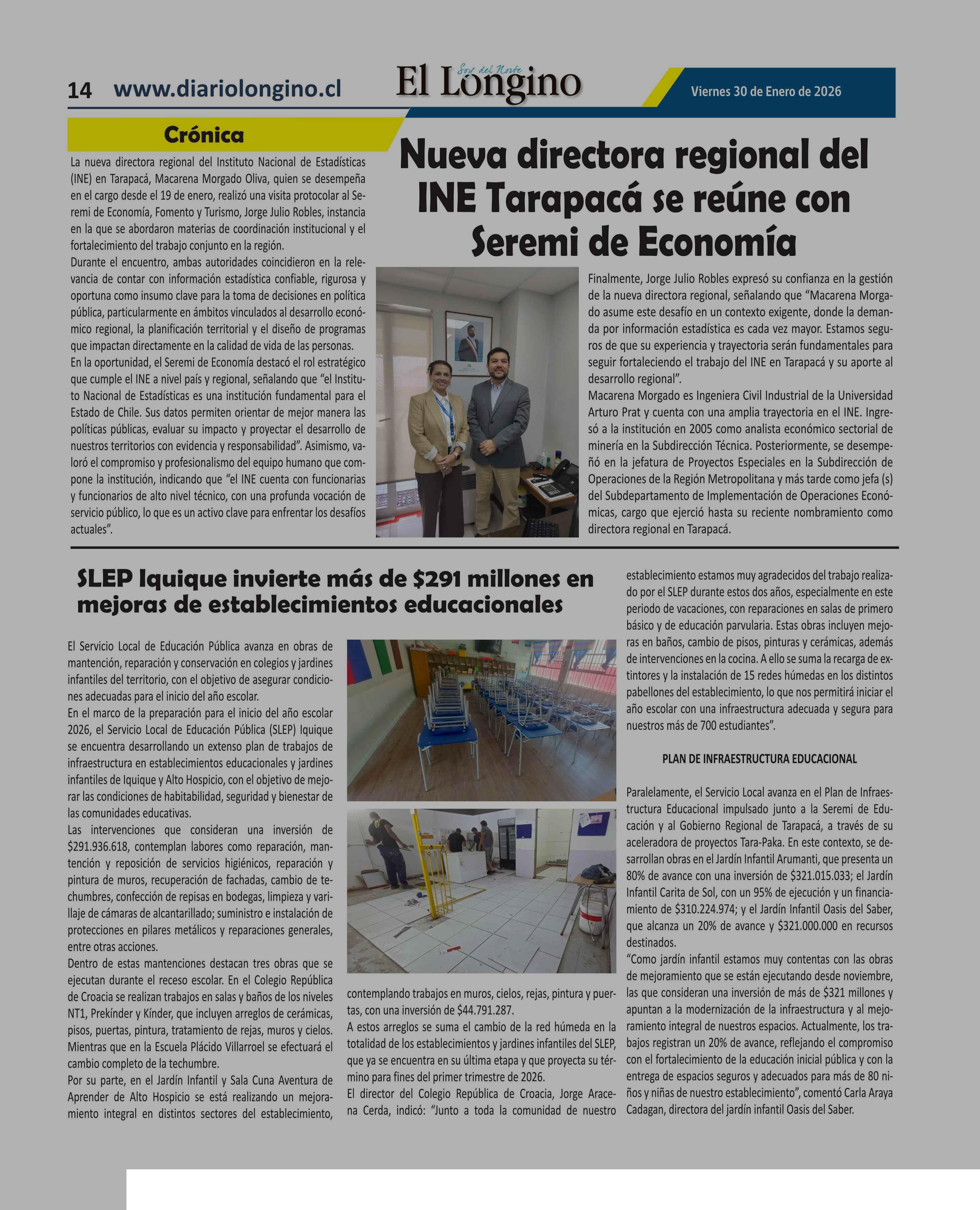 | Fecha: | 30-01-2026 | Sector: | Noticia general | Región: | Región de Tarapacá |