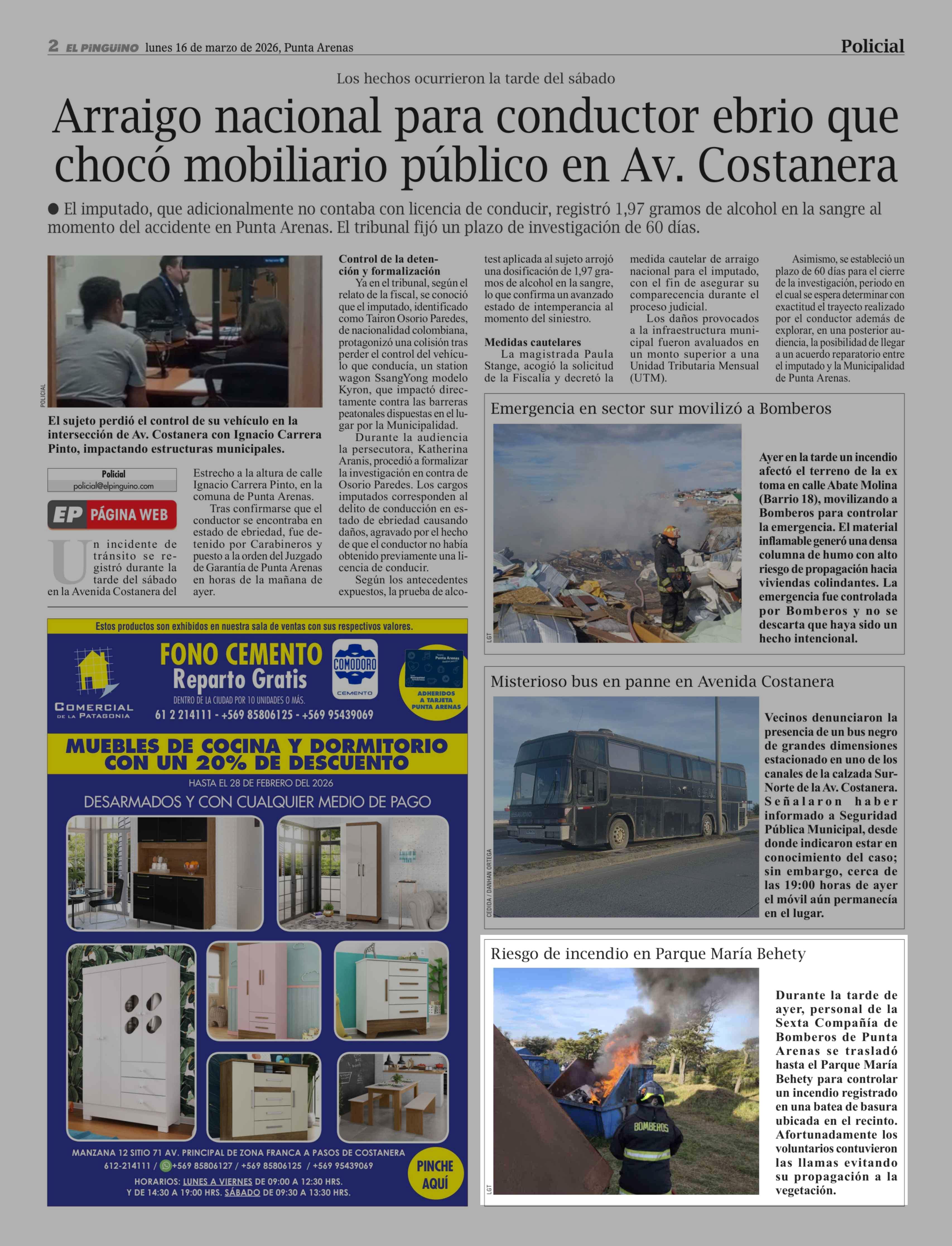 | Fecha: | 16-03-2026 | Sector: | Noticia general | Región: | Región de Magallanes y de la Antártica Chilena |
