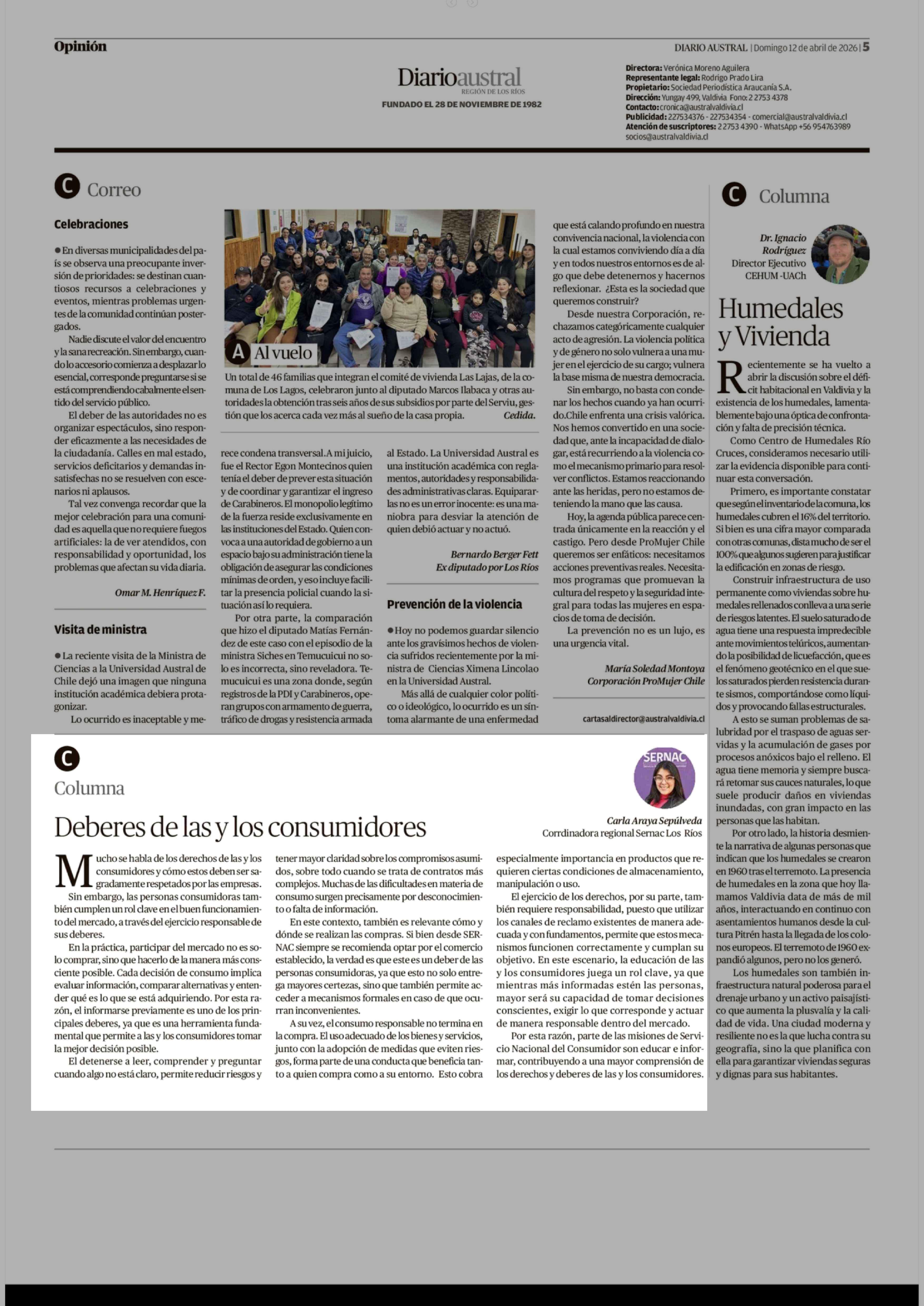 COLUMNAS DE OPINIÓN: Deberes de las y los consumidores 12-04-2026 Diario Austral Región de Los Ríos |
