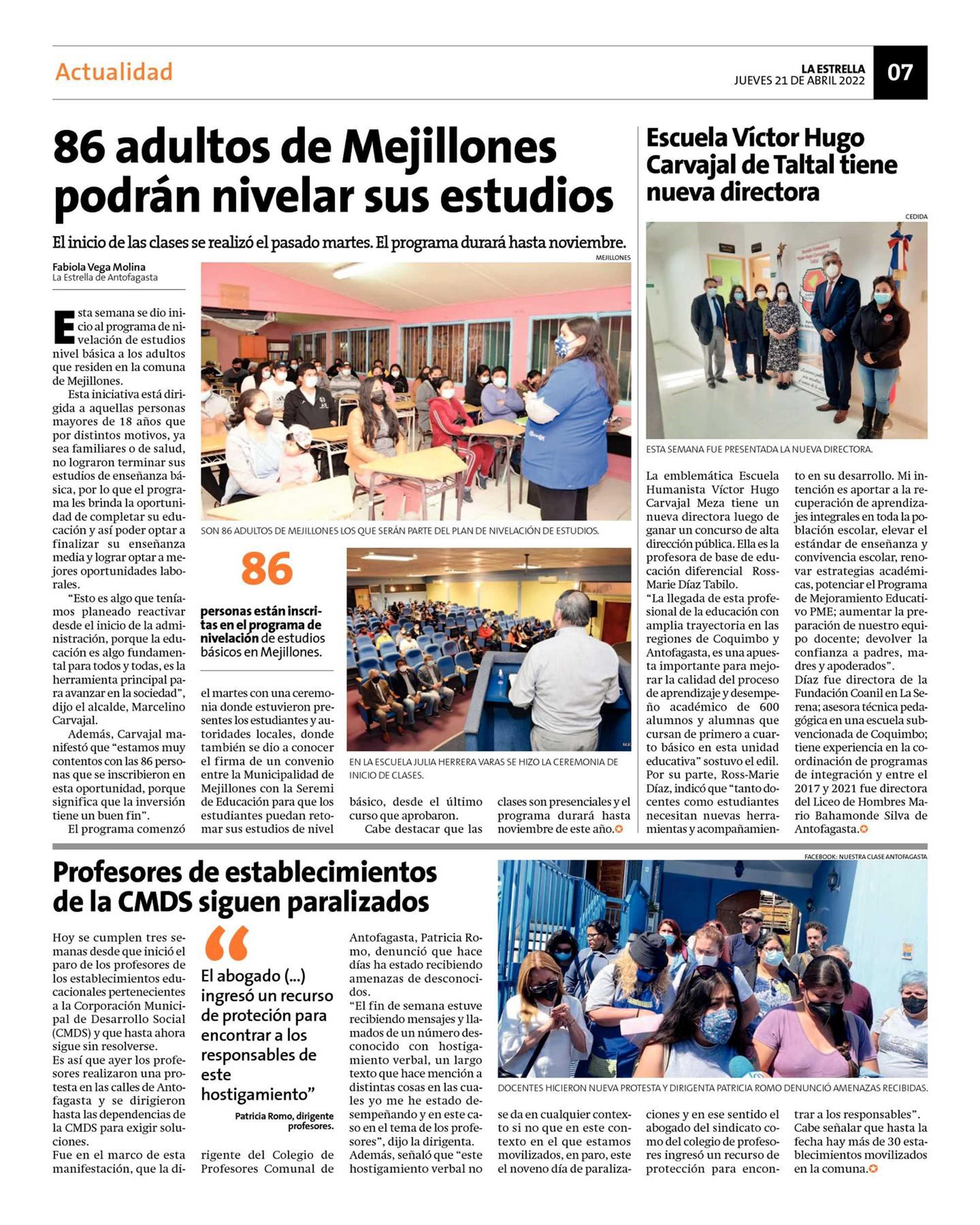 Escuela Victor Hugo Carvajal de Taltal tiene nueva directora 21-04-2022 La Estrella de Tocopilla |
