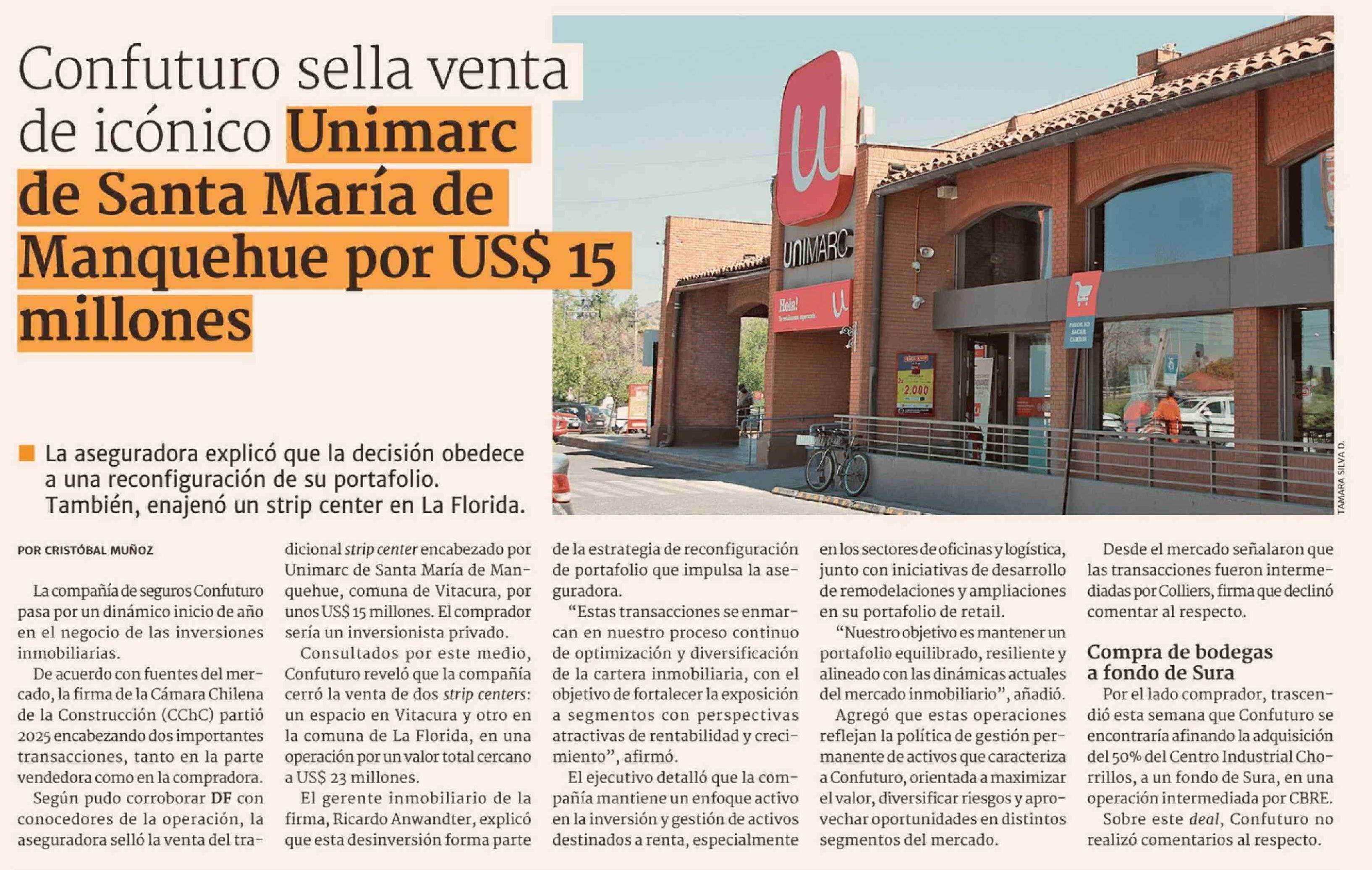 Título: Confuturo sella venta de icónico Unimarc de Santa María de Manquehue por US$ 15 millones