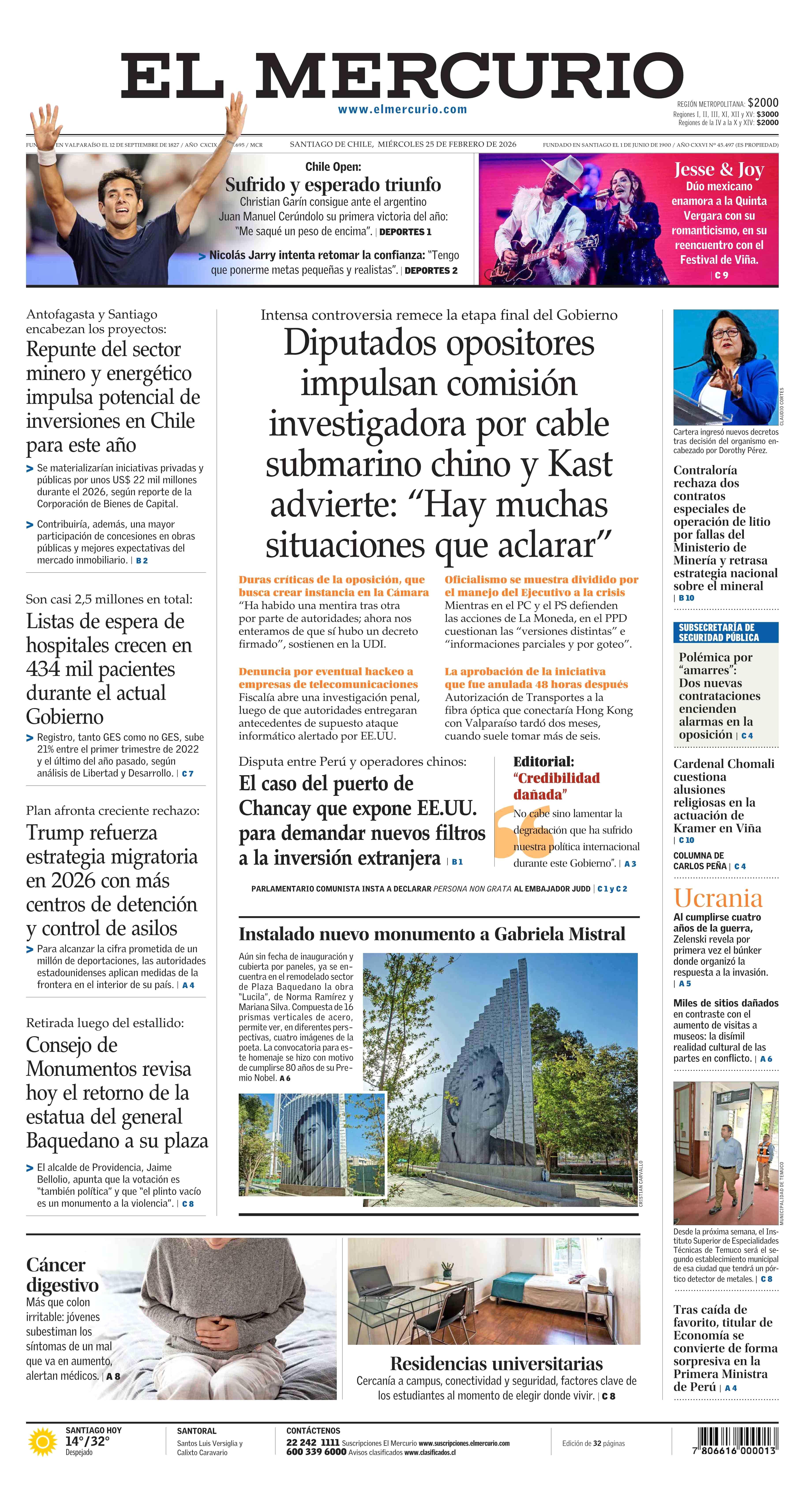 PORTADA EL MERCURIO (A) CHILE 25-02-2026 El Mercurio |