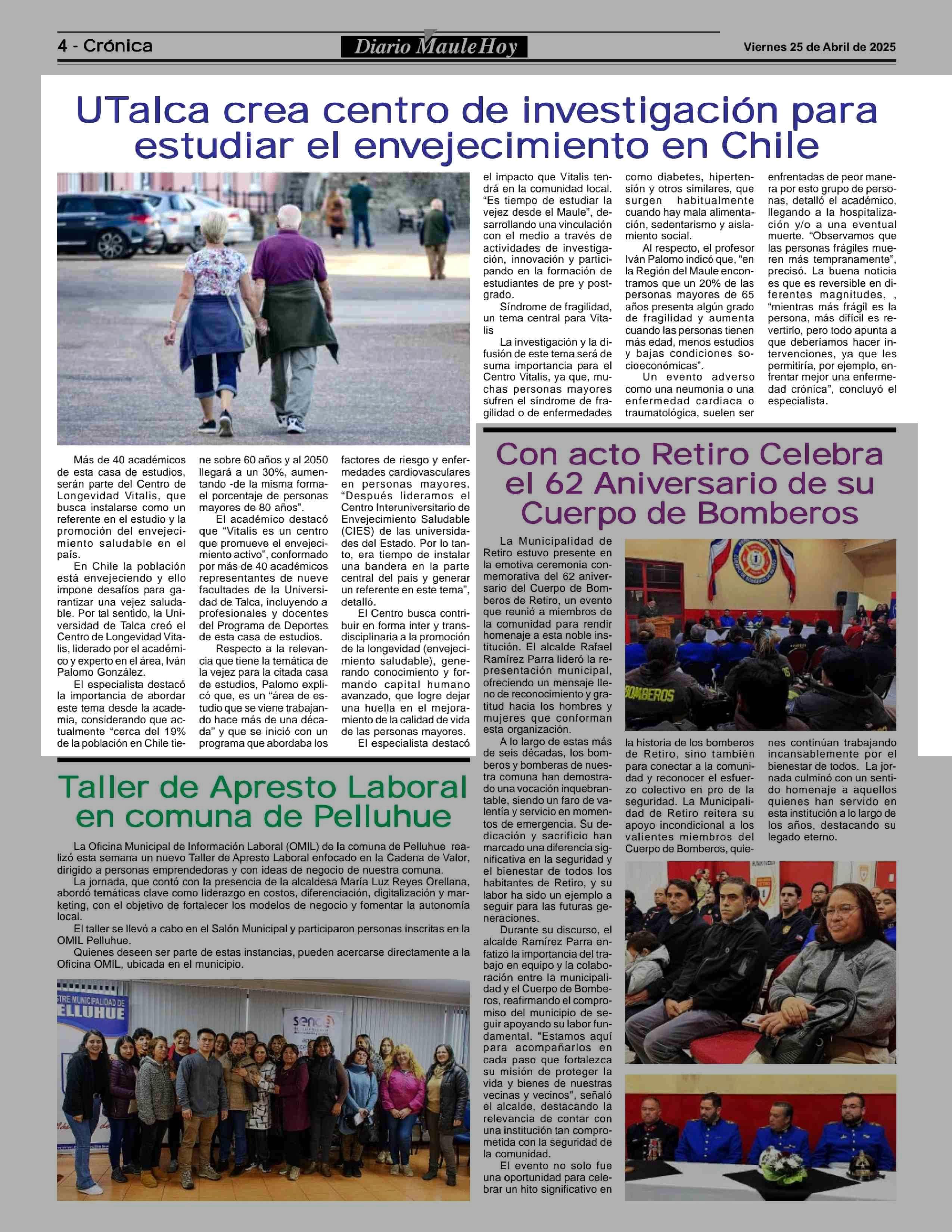 Fecha: 25-04-2025 Sector: Noticia general Región: Región del Maule