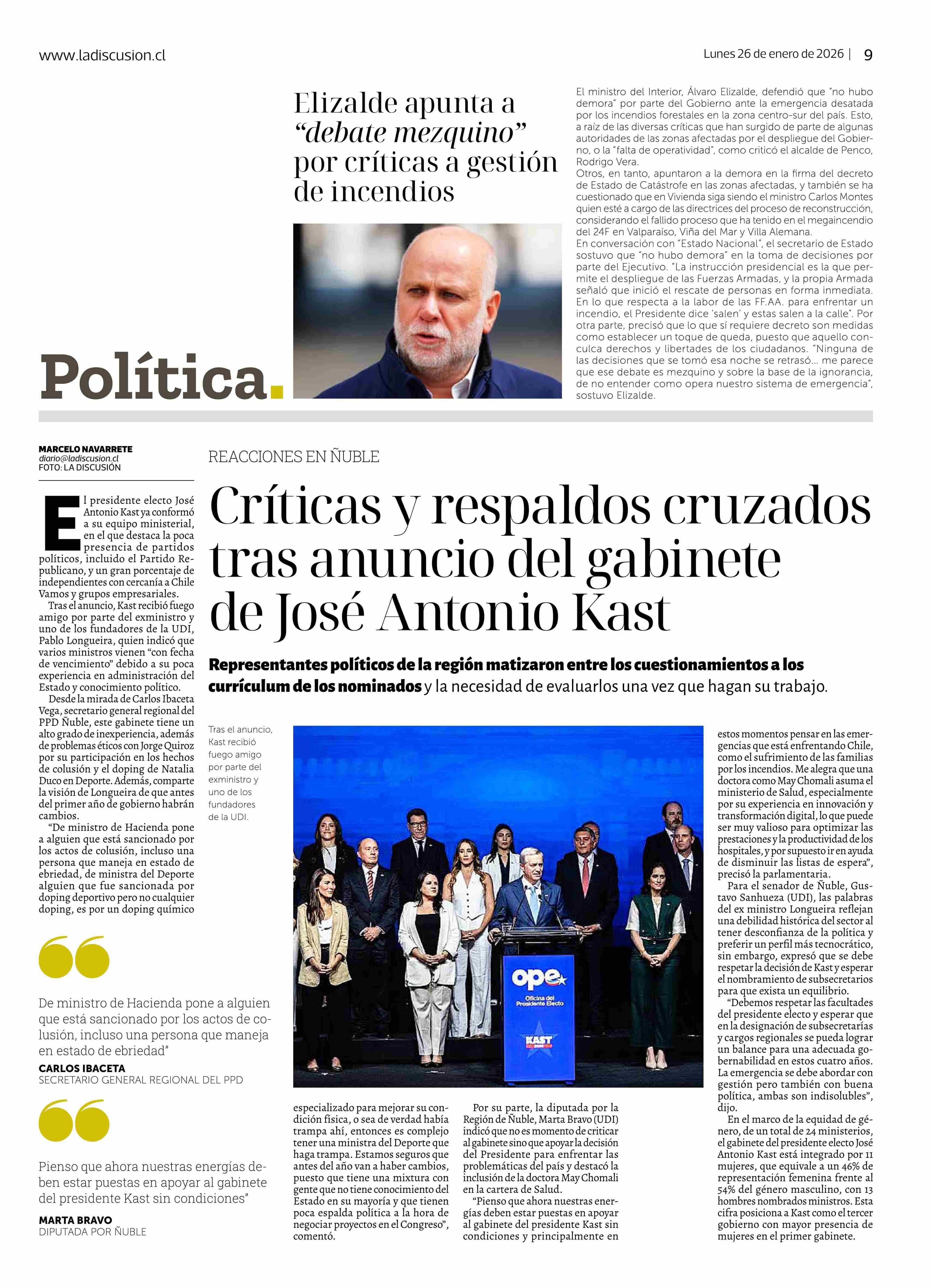 Título: Críticas y respaldos cruzados tras anuncio del gabinete de José Antonio Kast
