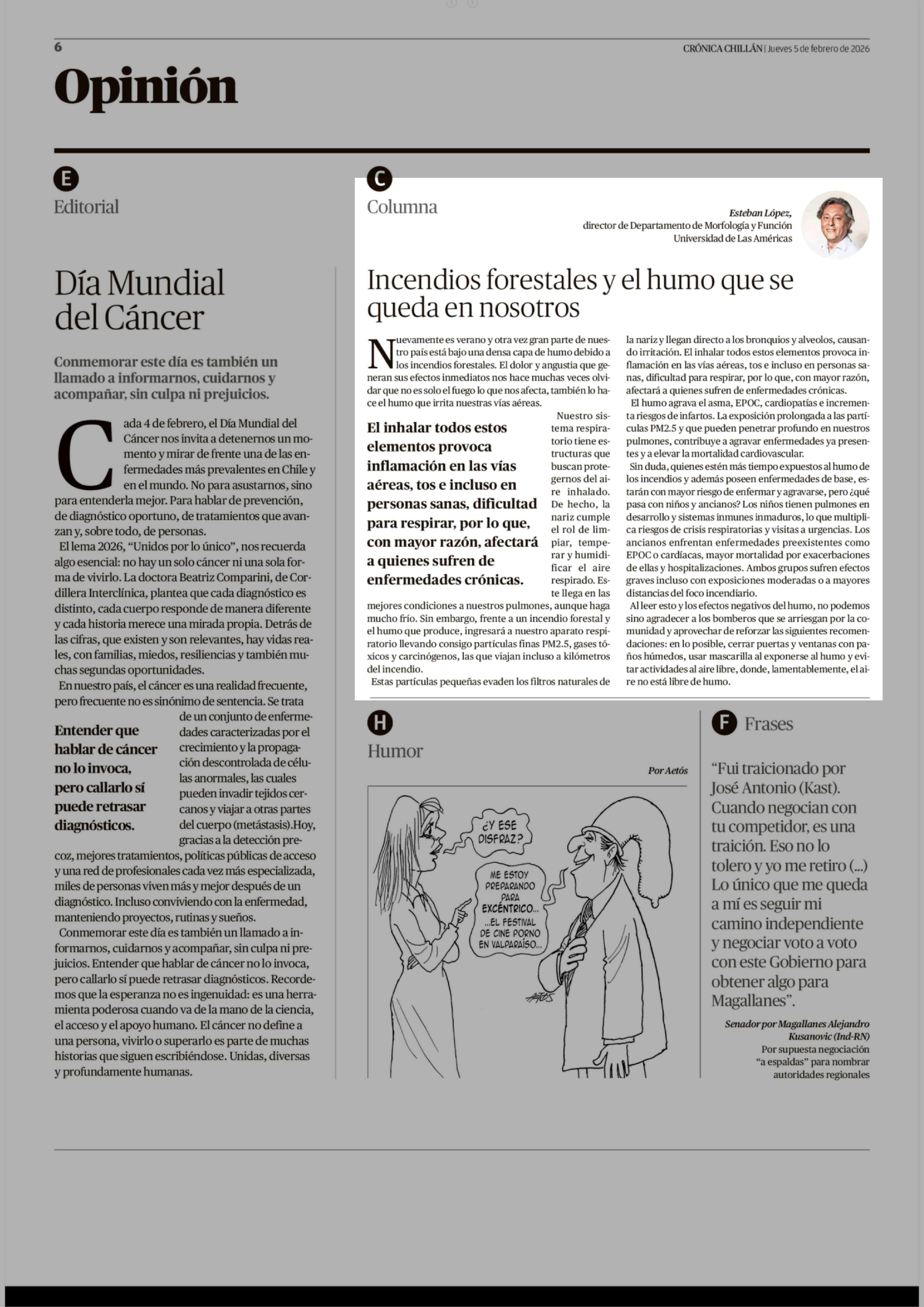 Columnas de Opinión: Incendios forestales y el humo que se queda en nosotros 05-02-2026 Crónica de Chillán |