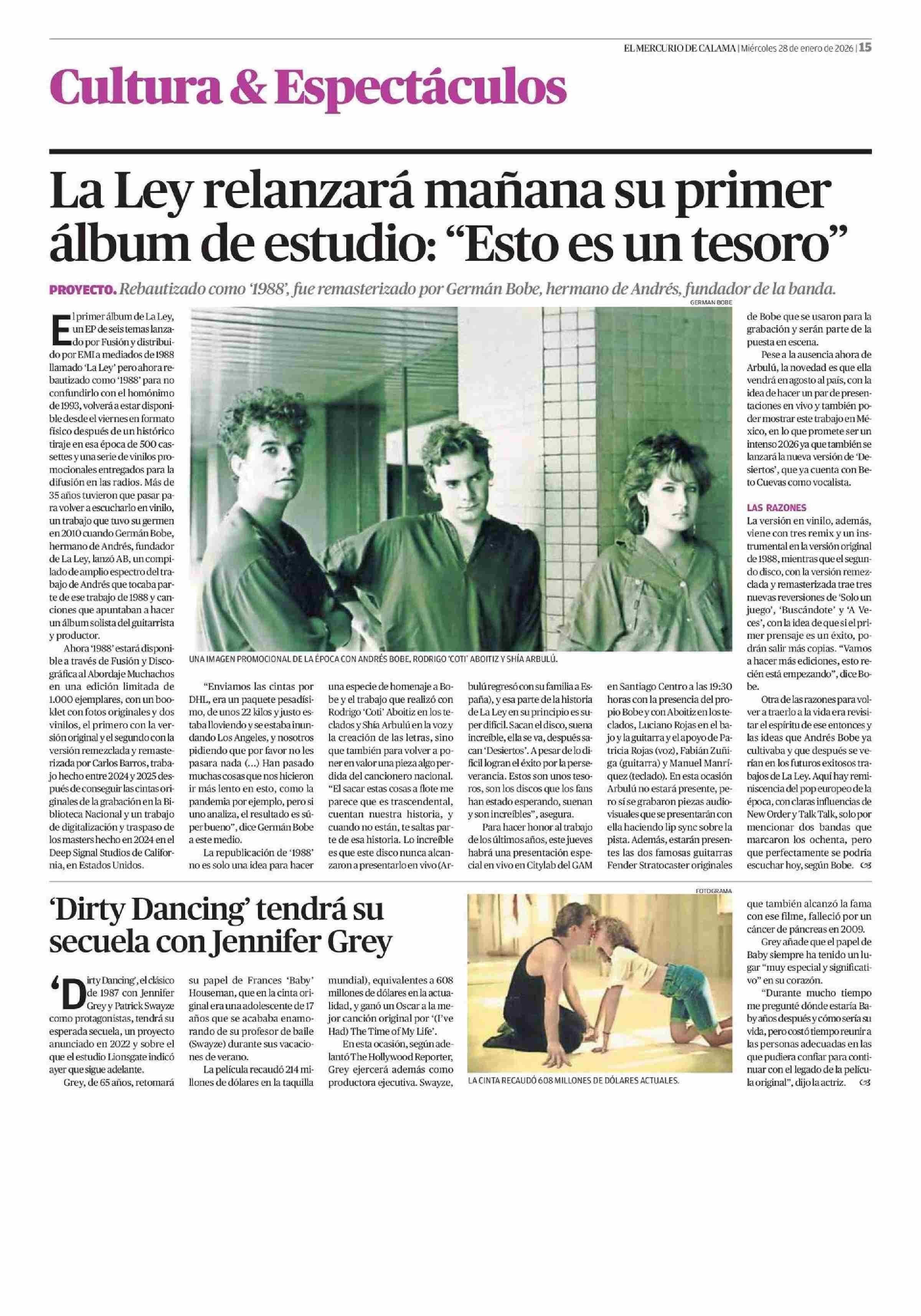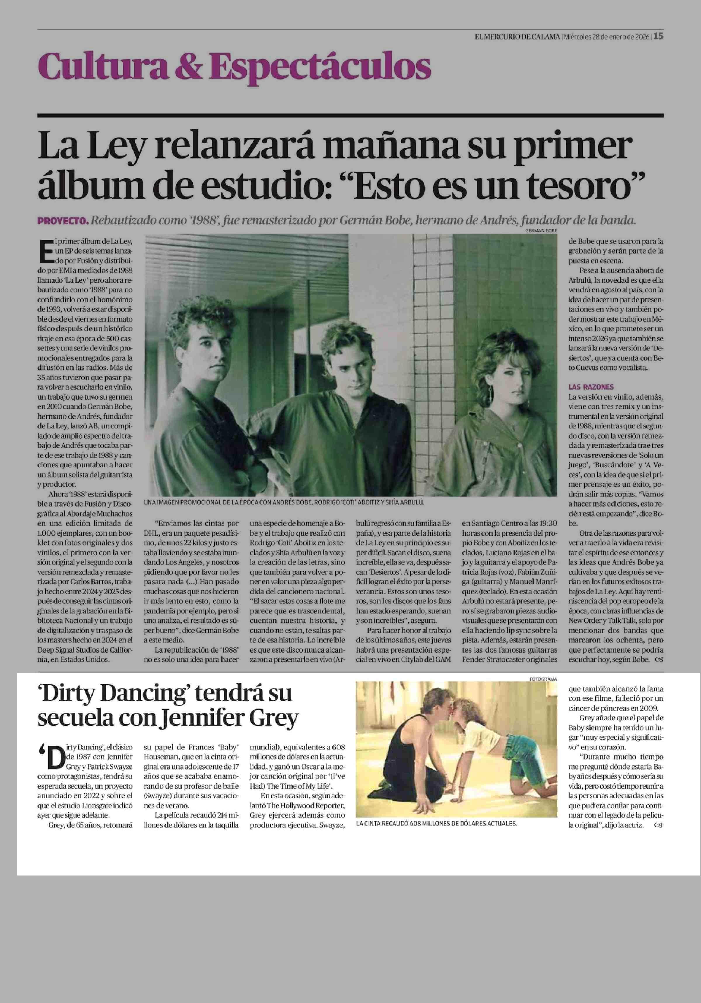 Dirty Dancing' tendrá su secuela con Jennifer Grey 28-01-2026 El Mercurio de Calama |