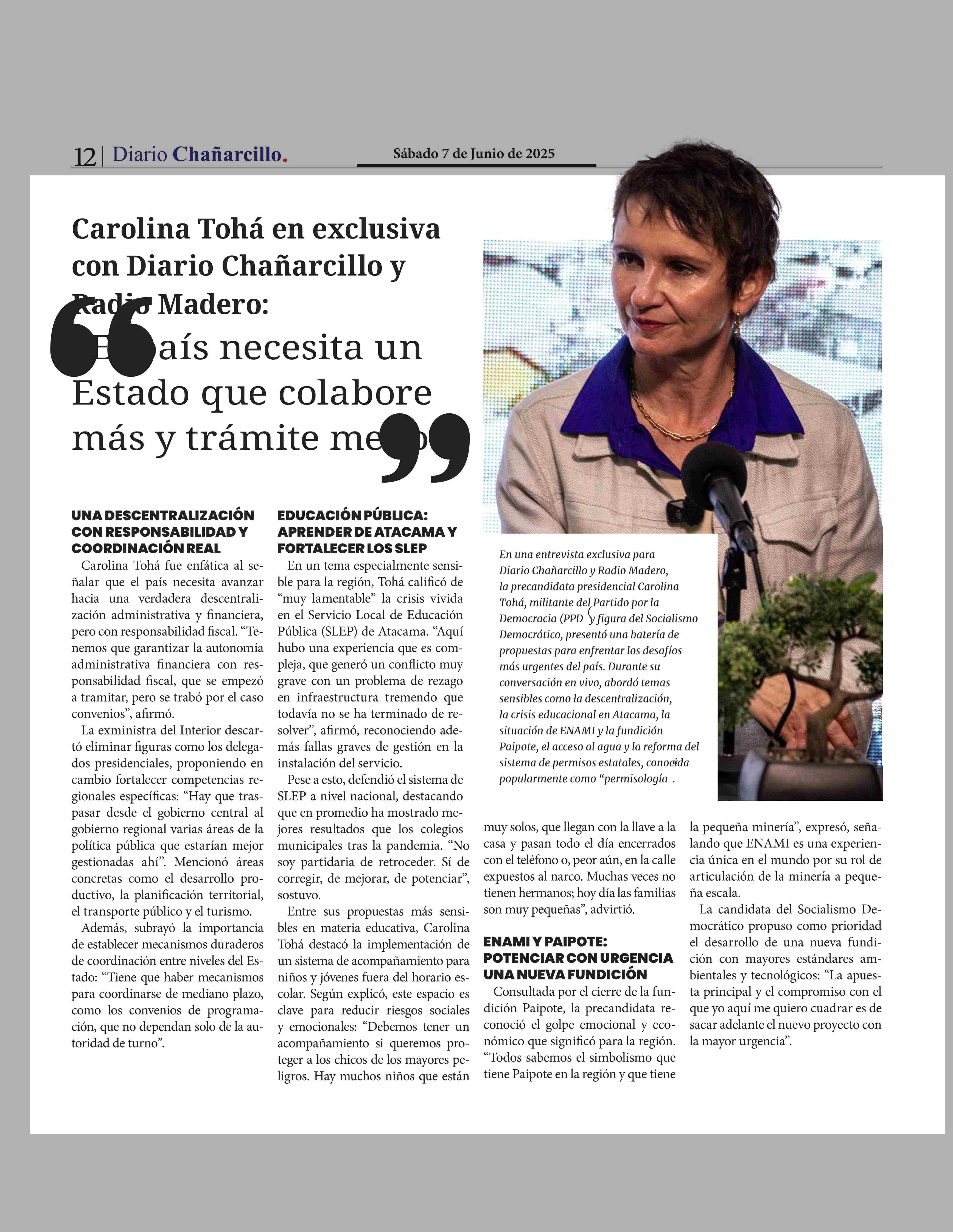 "El país necesita un Estado que colabore más y trámite menos" 07-06-2025 Diario Chañarcillo |