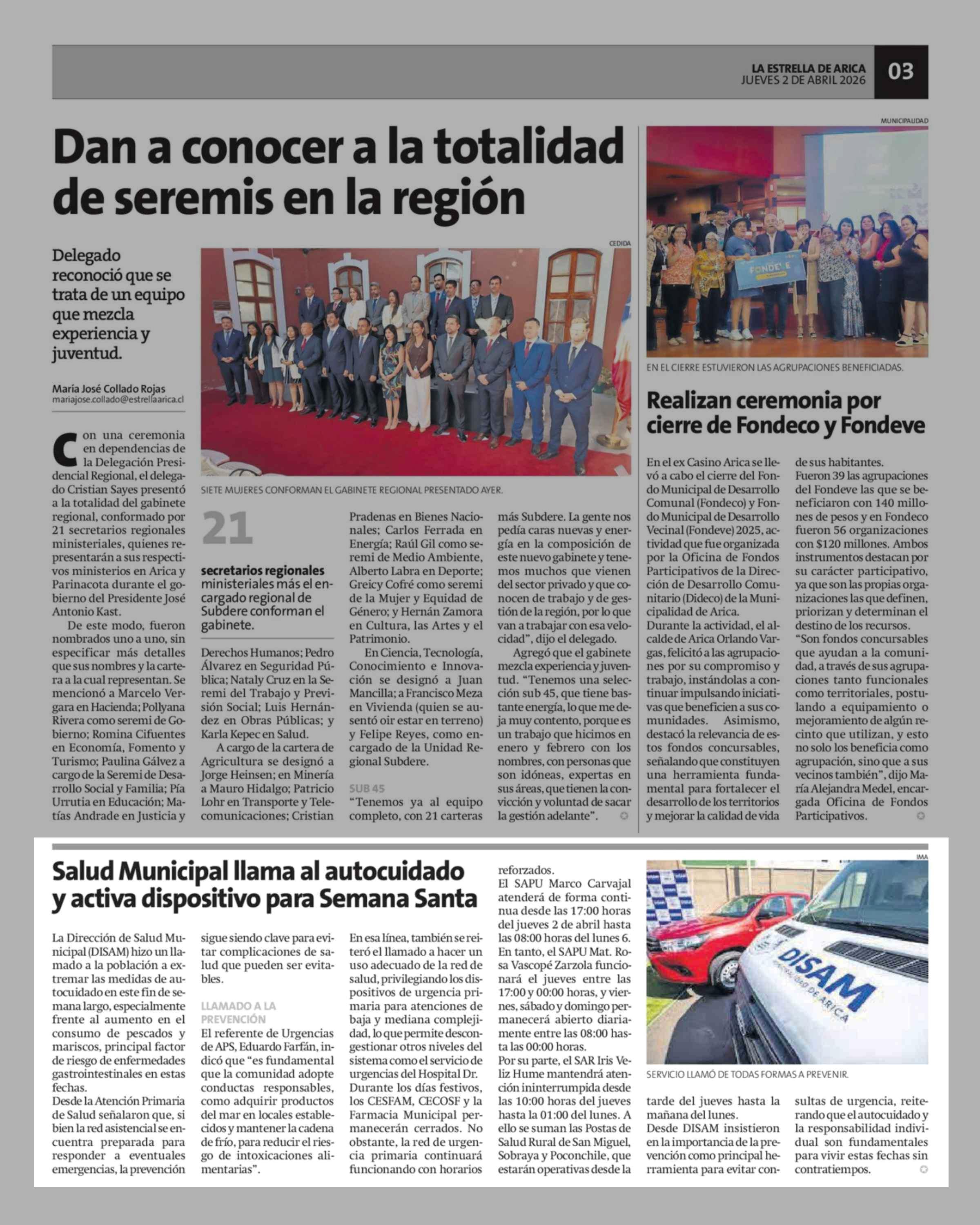 Fecha: 02-04-2026 Sector: Noticia general Región: Región de Arica y Parinacota