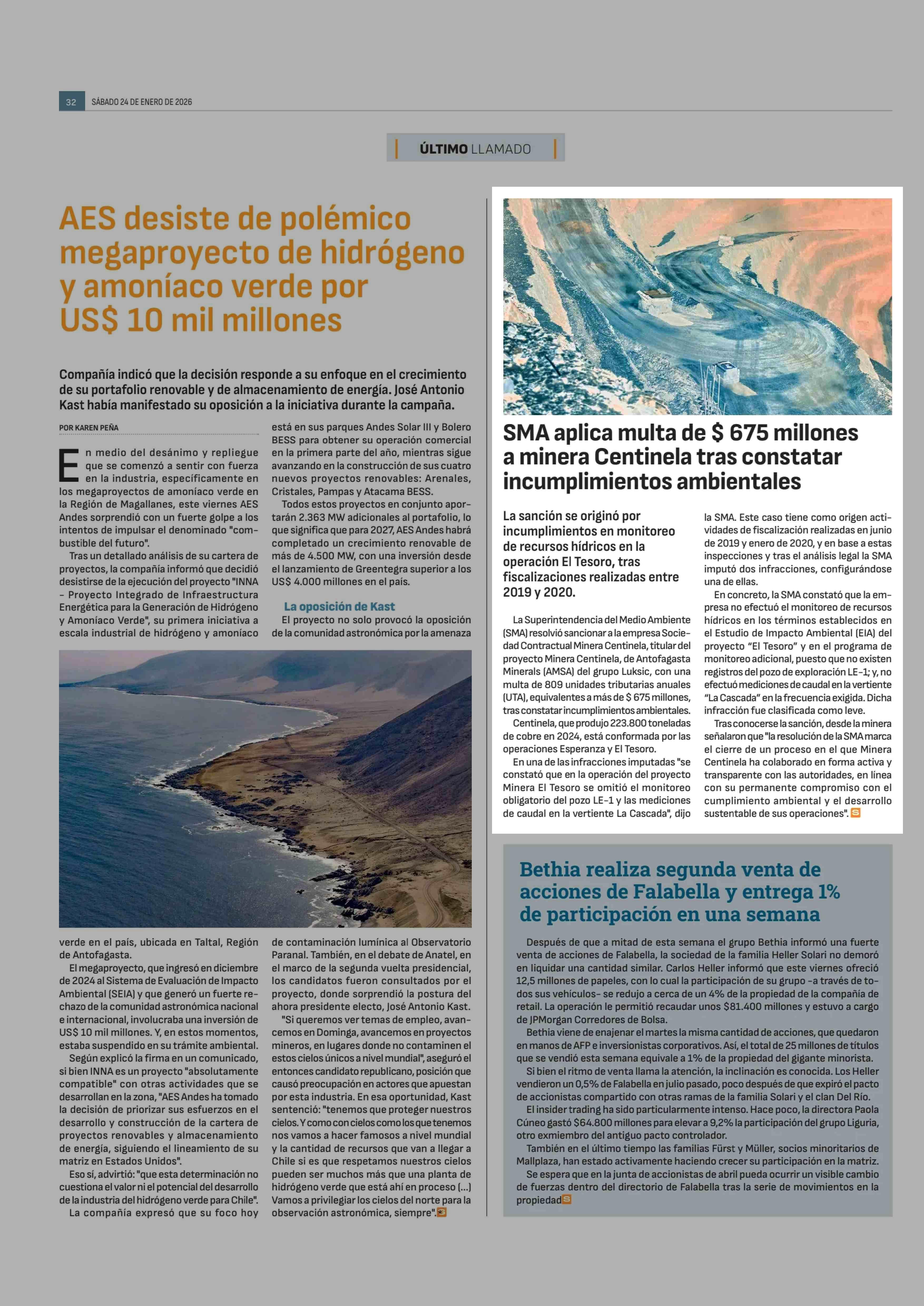 Título: SMA aplica multa de $ 675 millones a minera Centinela tras constatar incumplimientos ambientales