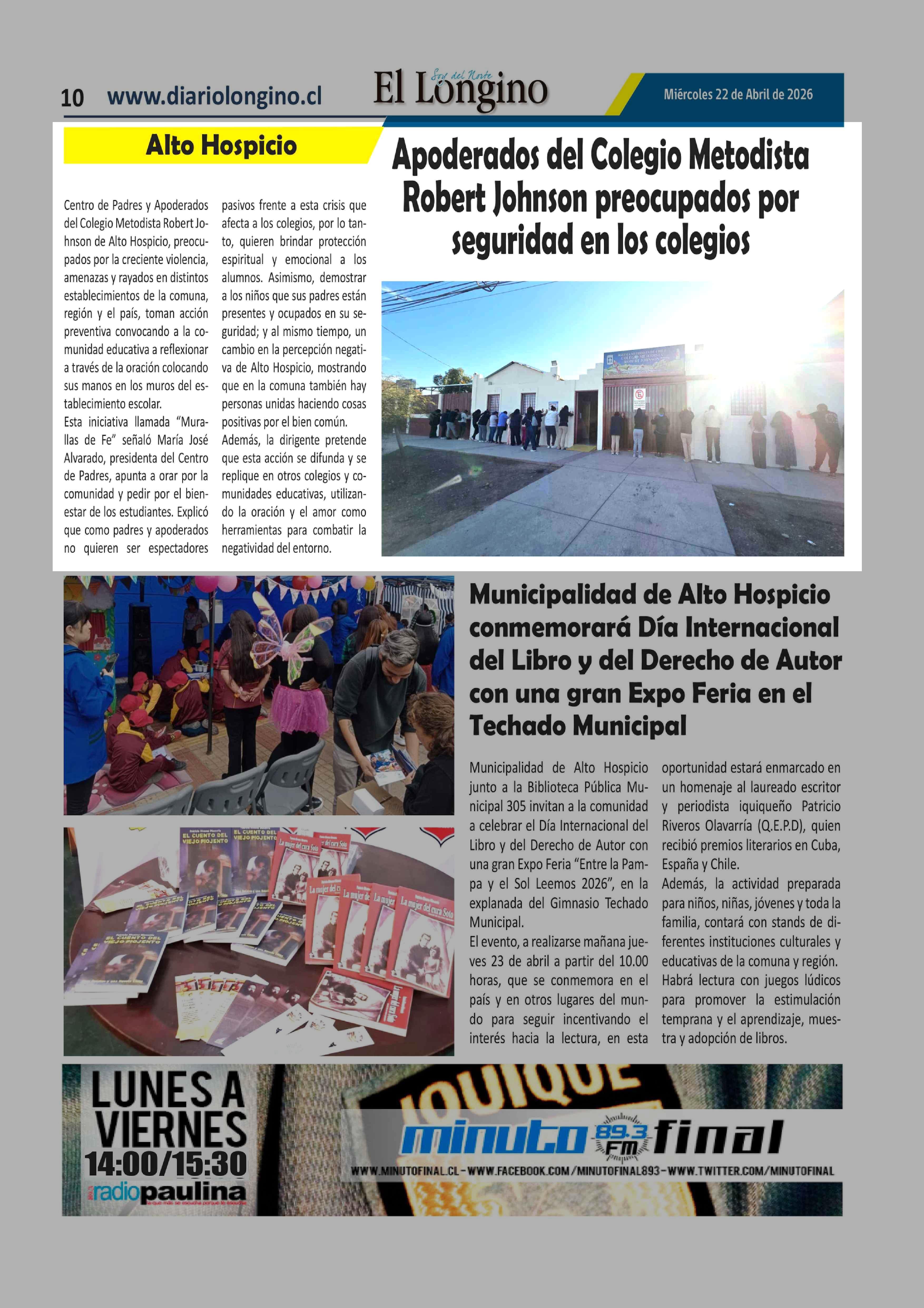 Apoderados del Colegio Metodista Robert Johnson preocupados por seguridad en los colegios 22-04-2026 El Longino |