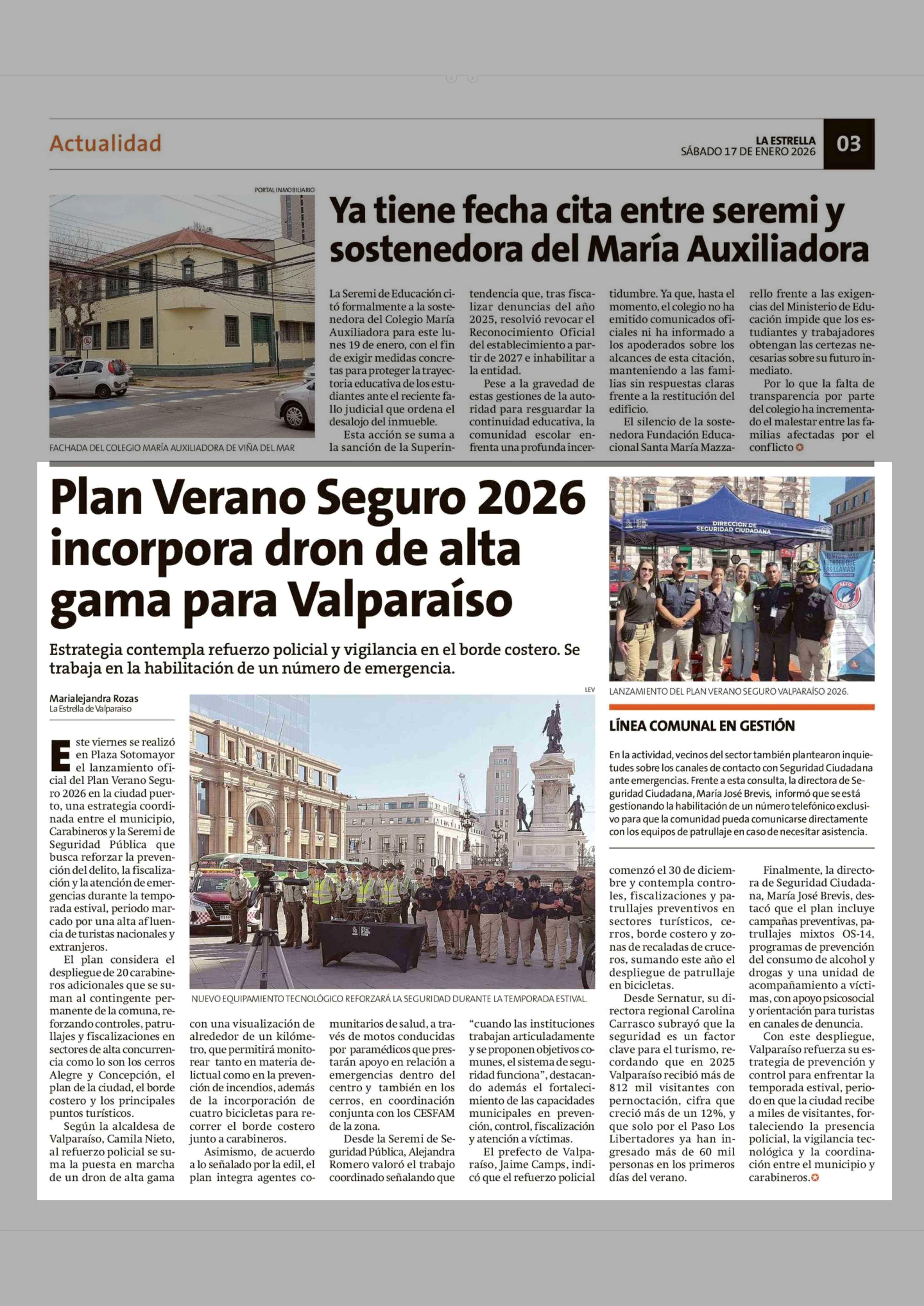 Plan Verano Seguro 2026 incorpora dron de alta gama para Valparaíso 17-01-2026 La Estrella de Valparaíso |