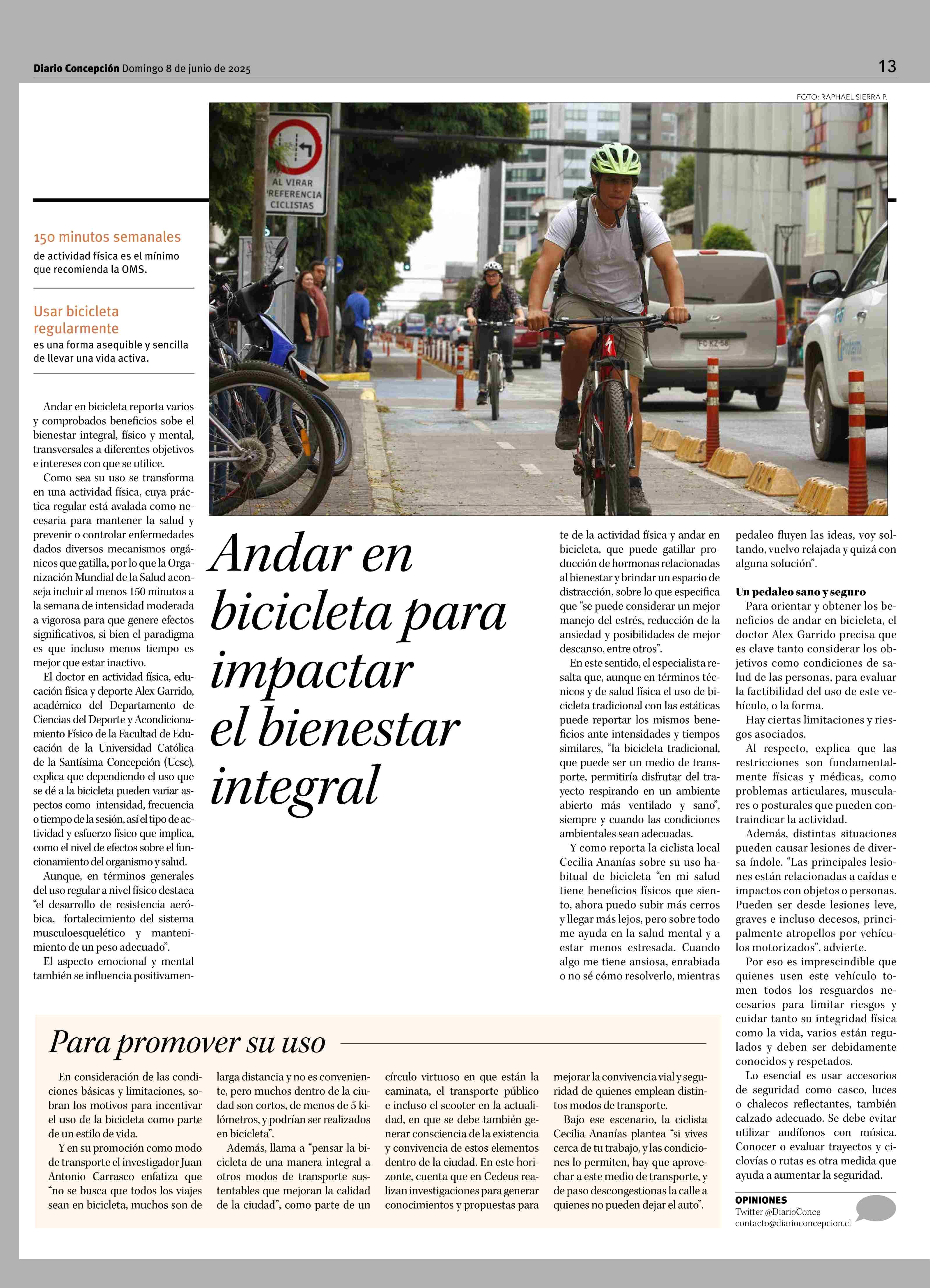 Bicicleta: modo de transporte eficiente y sostenible para una vida activa y saludable 08-06-2025 Diario Concepción |