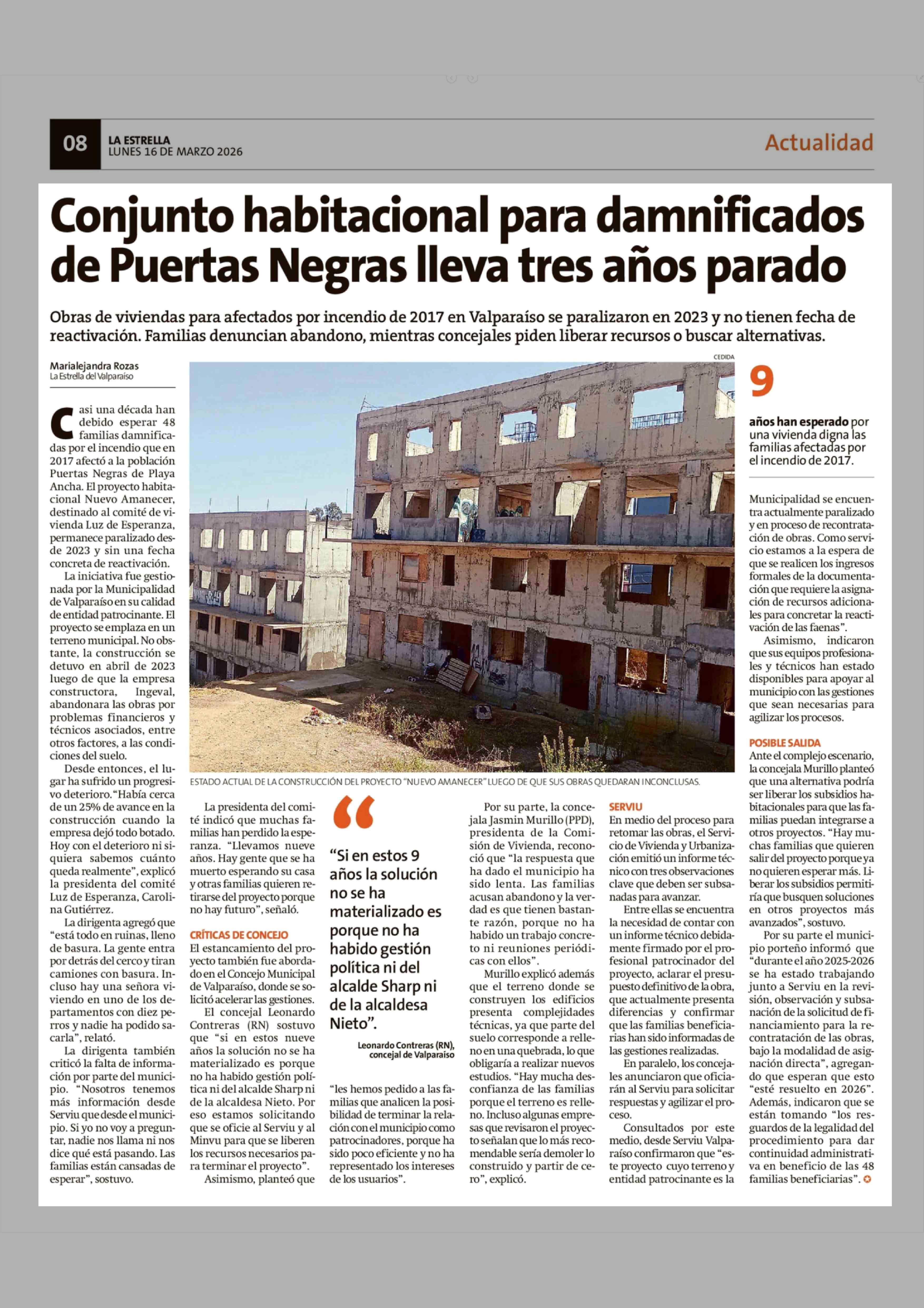 Conjunto habitacional para damnificados de Puertas Negras lleva tres años parado 16-03-2026 La Estrella de Valparaíso |