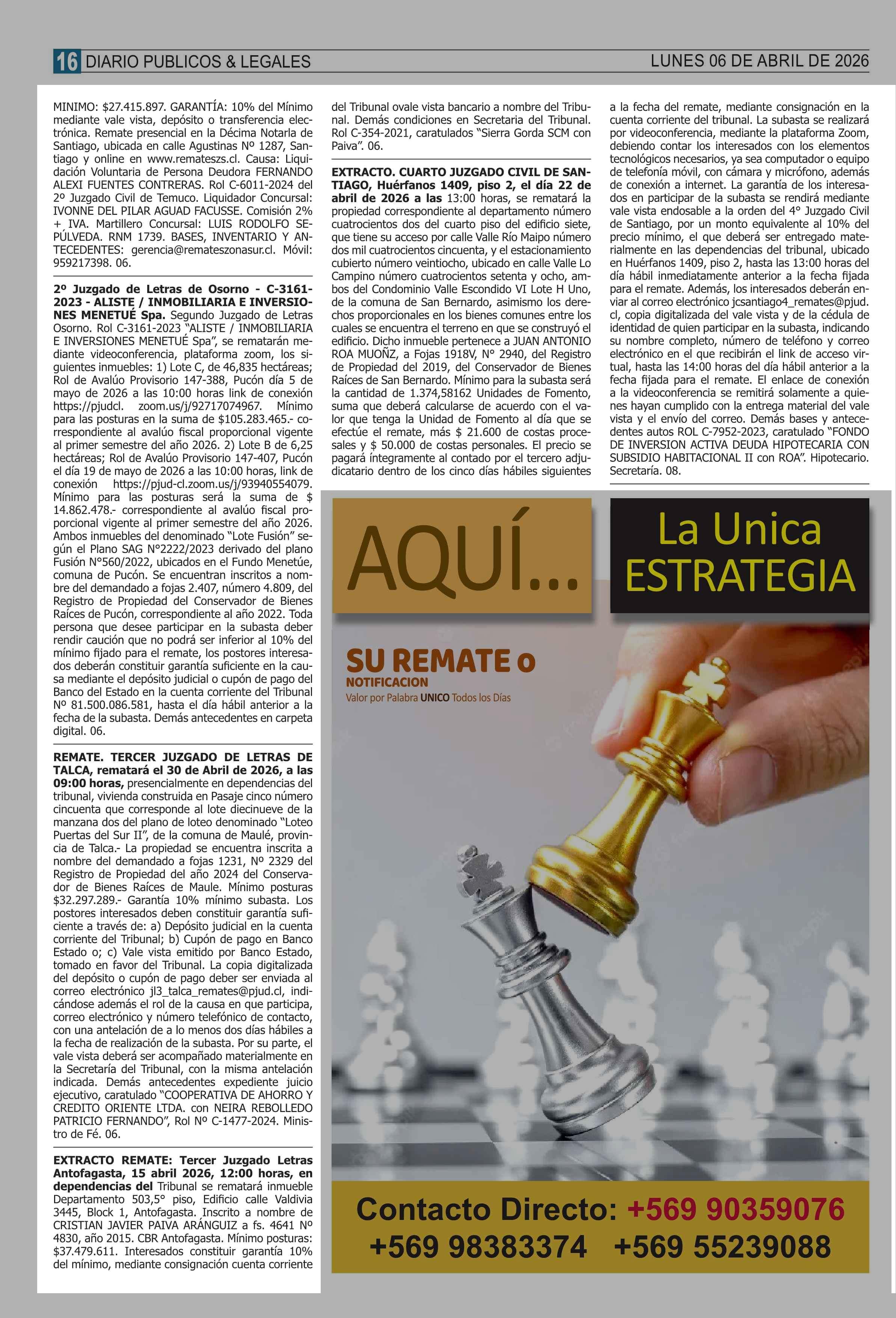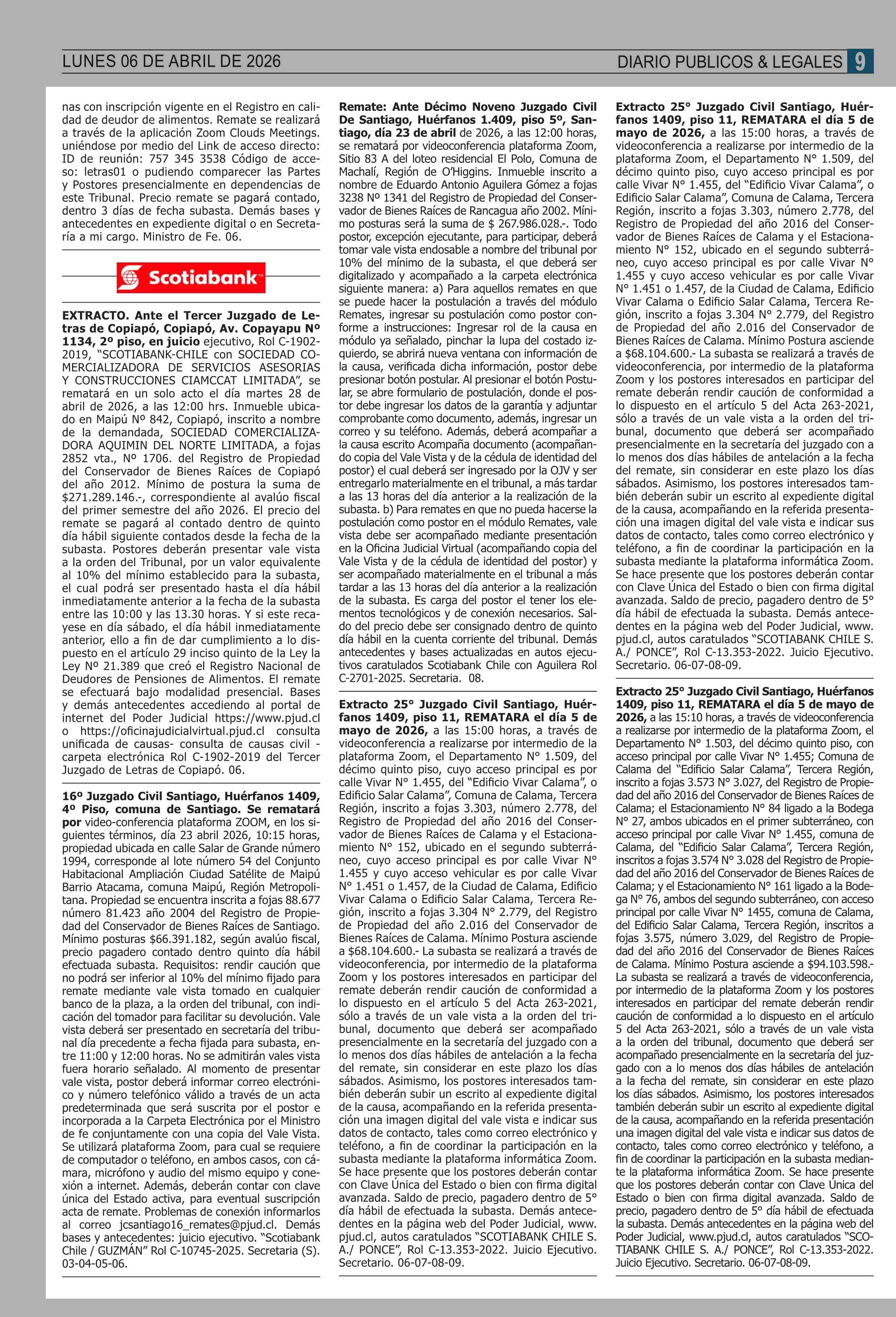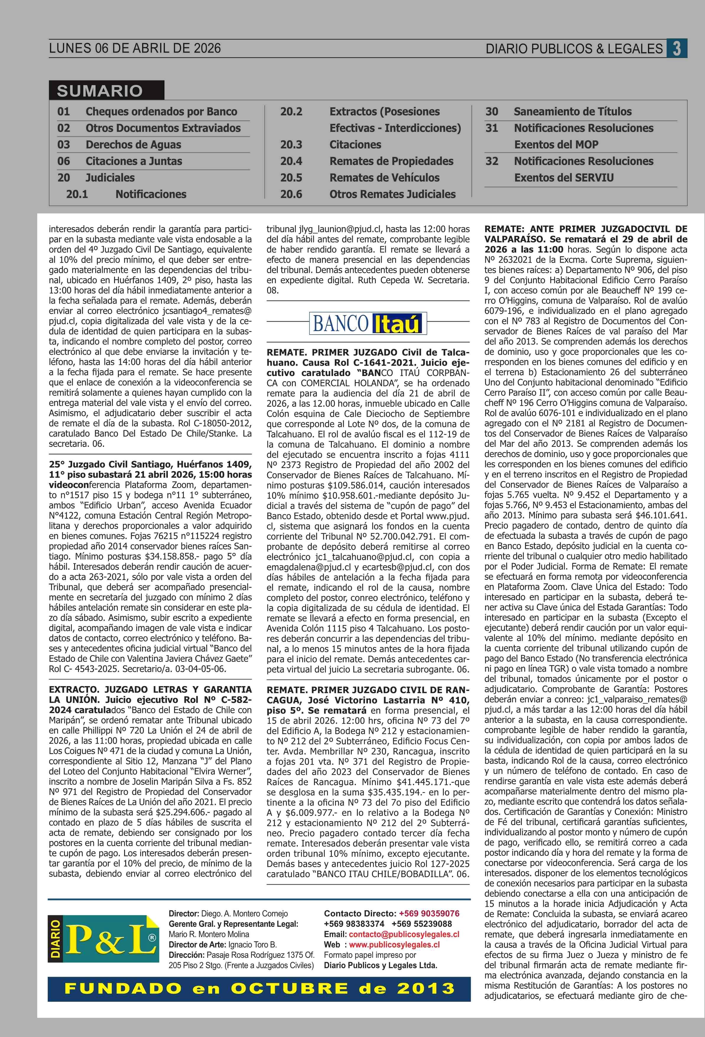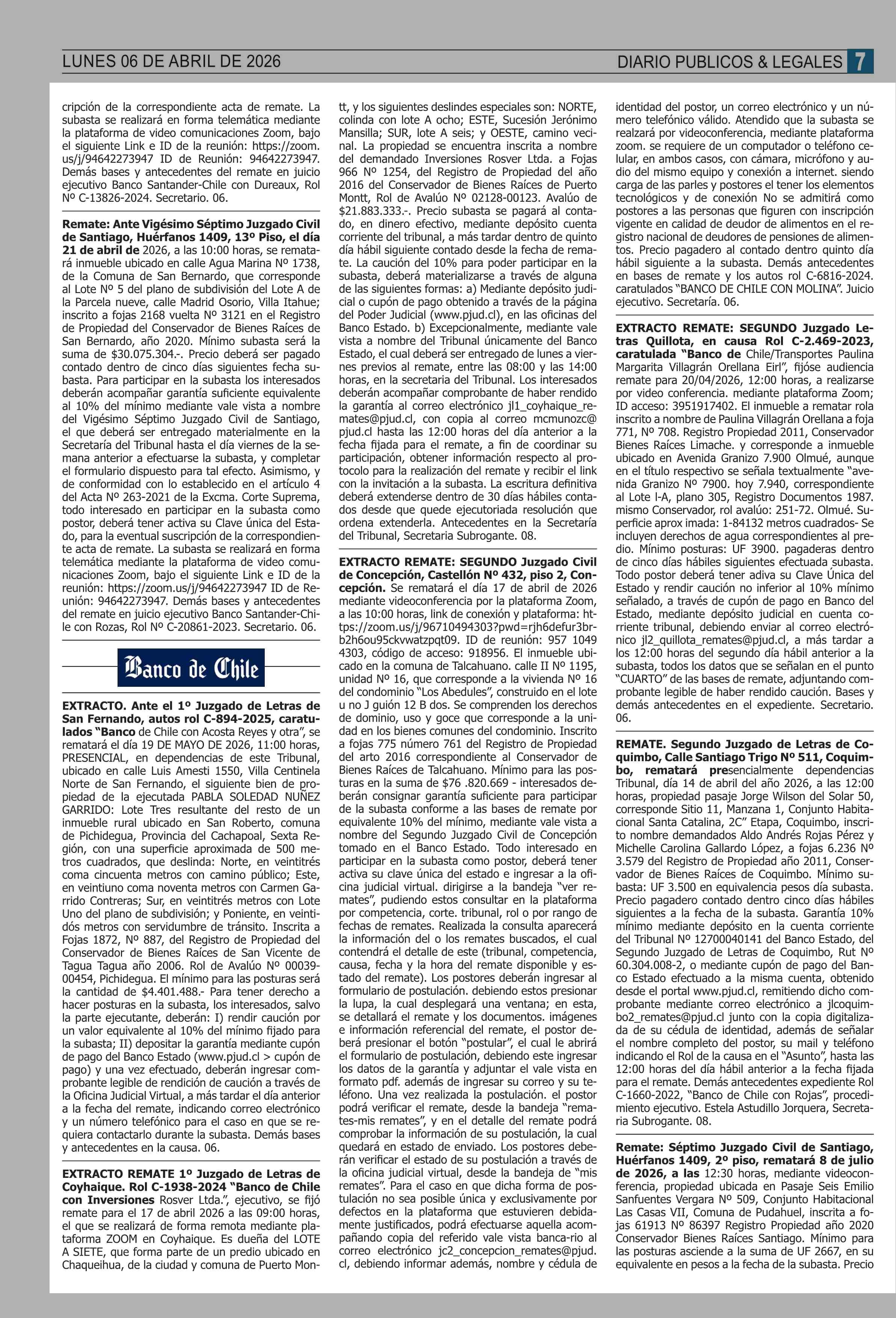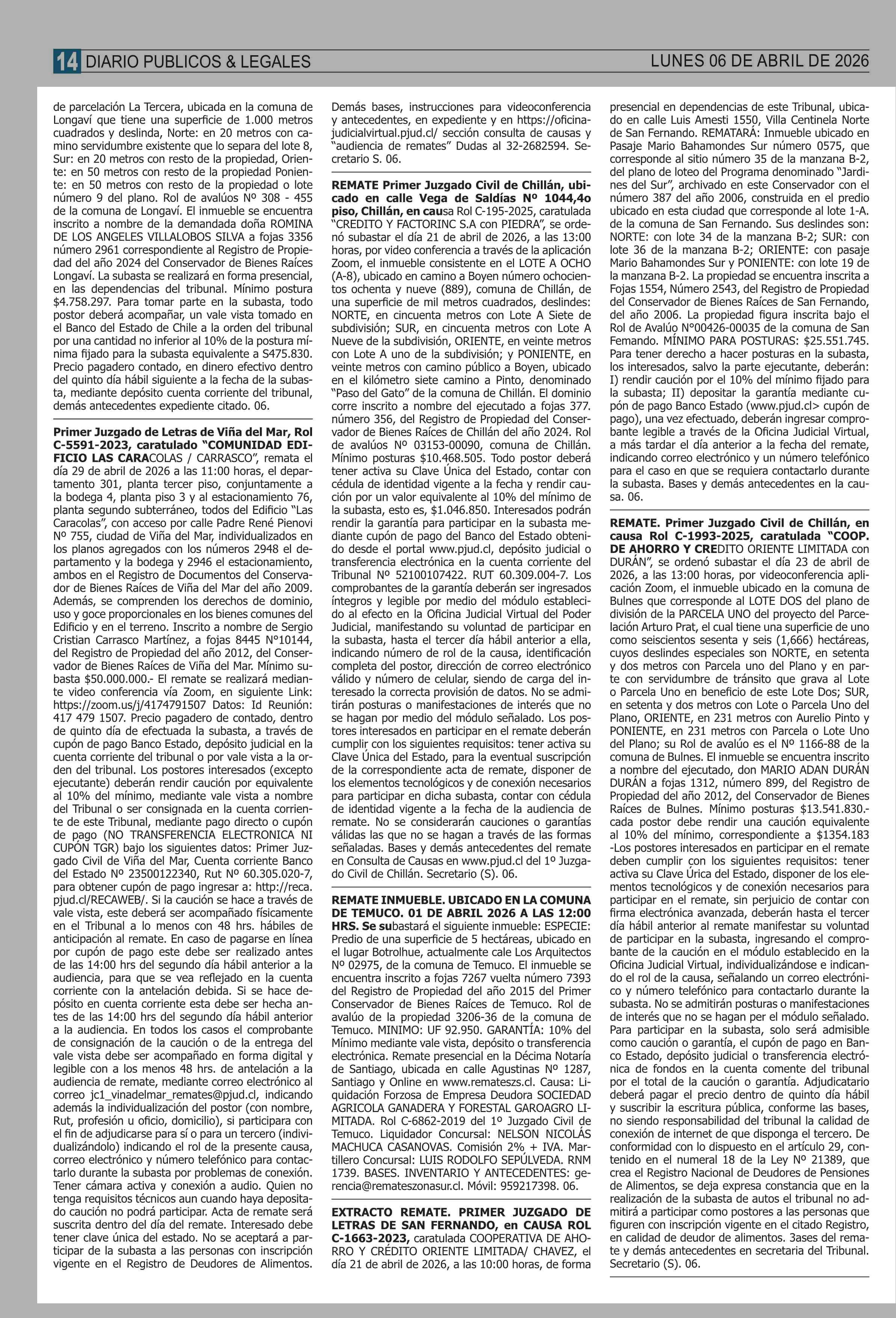 REMATES: COMPENDIO REMATES de PROPIEDADES (NACIONAL 06-04-2026 P&L Públicos y Legales |
