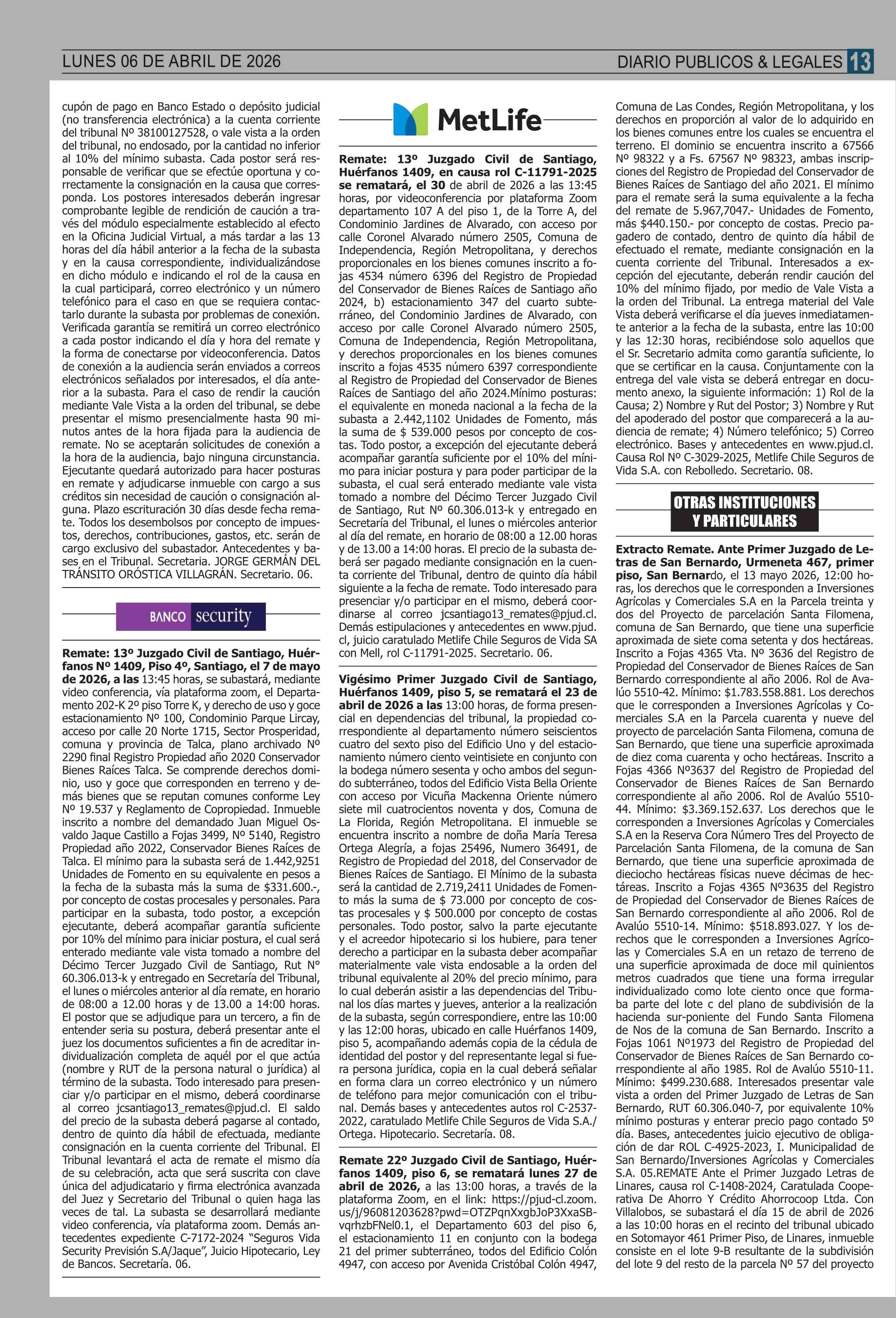 | Fecha: | 06-04-2026 | Sector: | Remates | Región: | Región Metropolitana de Santiago |