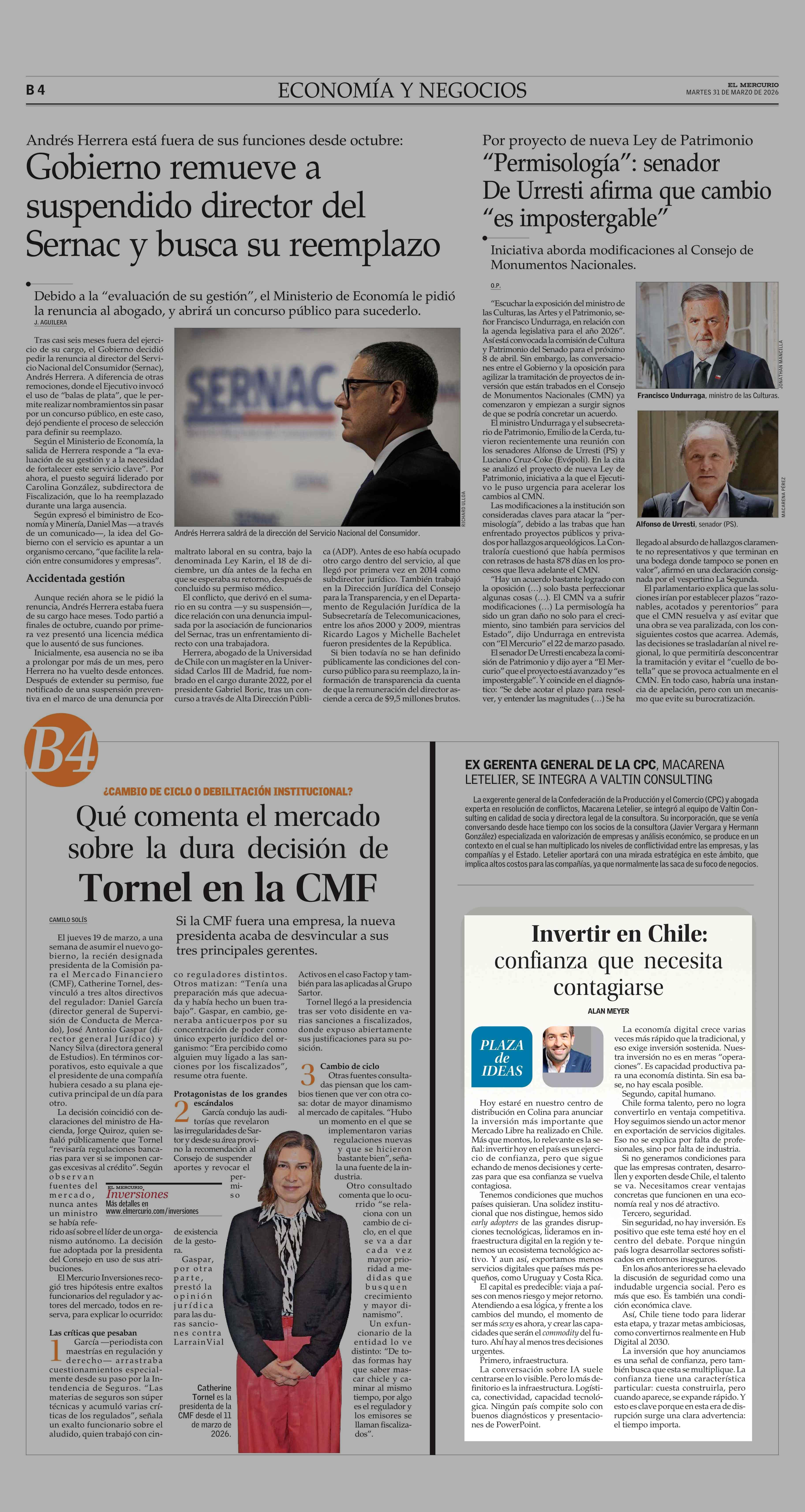 Columnas de Opinión: Invertir en Chile: confianza que necesita contagiarse 31-03-2026 El Mercurio |