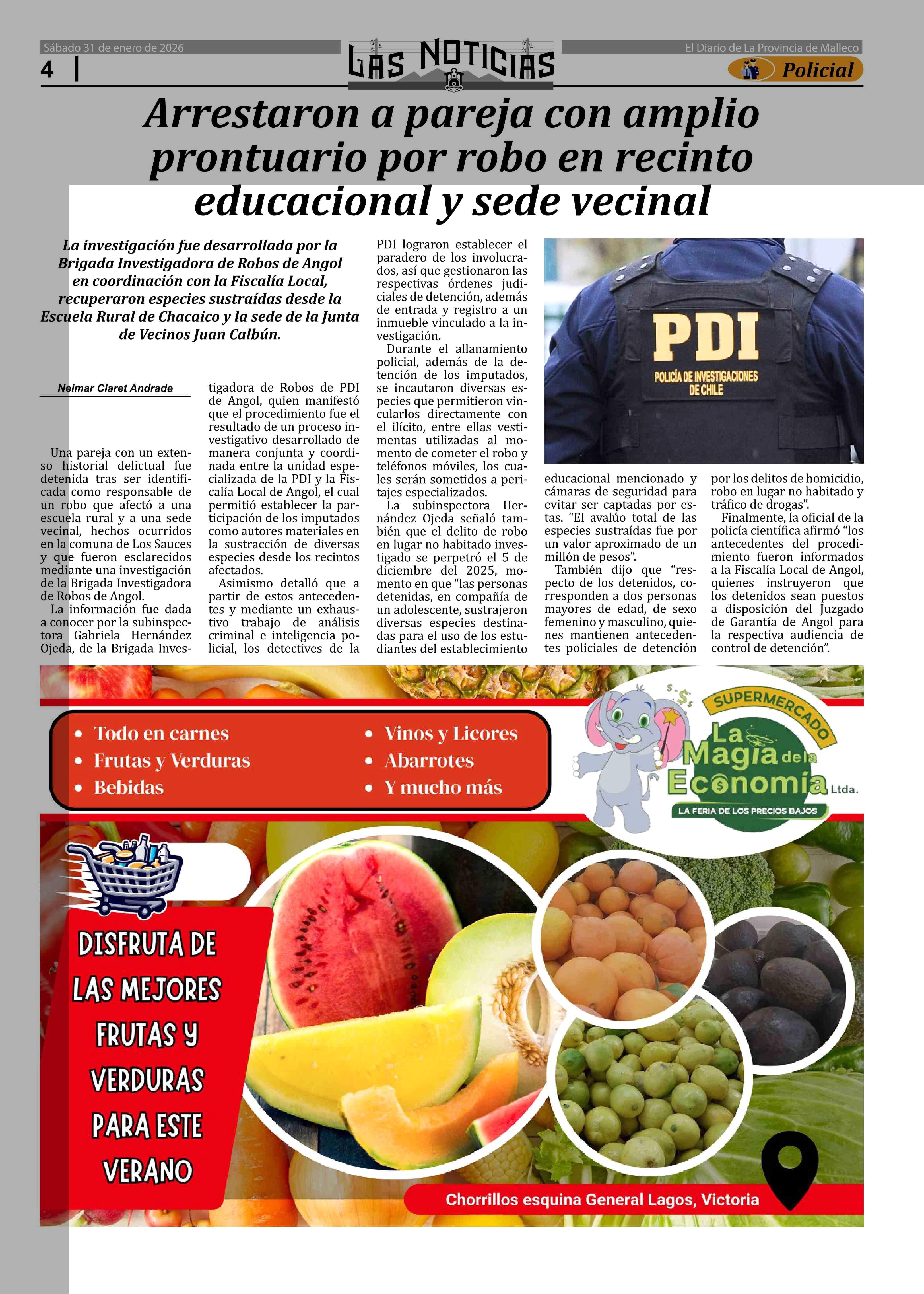 Arrestaron a pareja con amplio prontuario por robo en recinto educacional y sede vecinal 31-01-2026 Las Noticias |