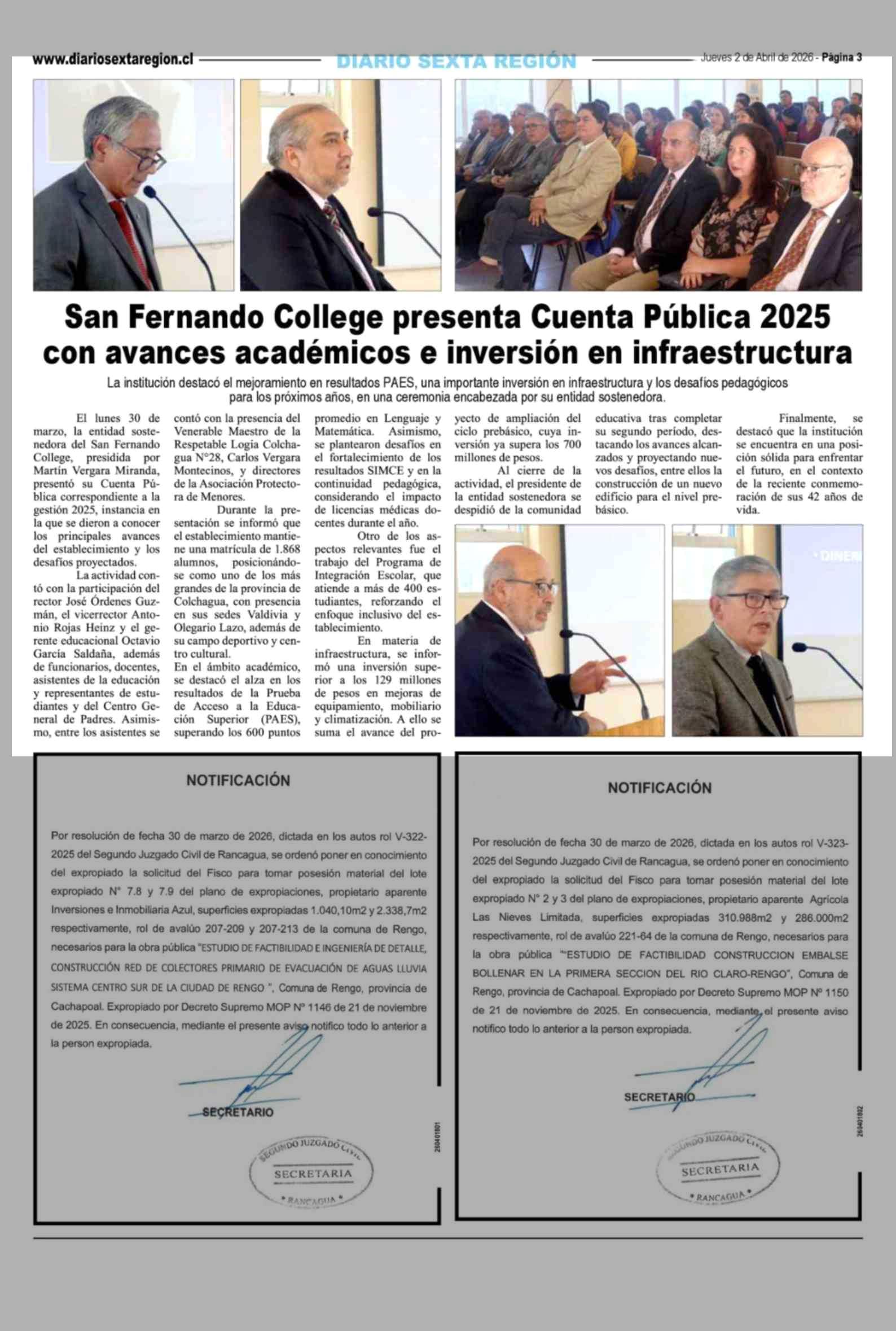 San Fernando College presenta Cuenta Pública 2025 con avances académicos e inversión en infraestructura 02-04-2026 Diario VI Región |