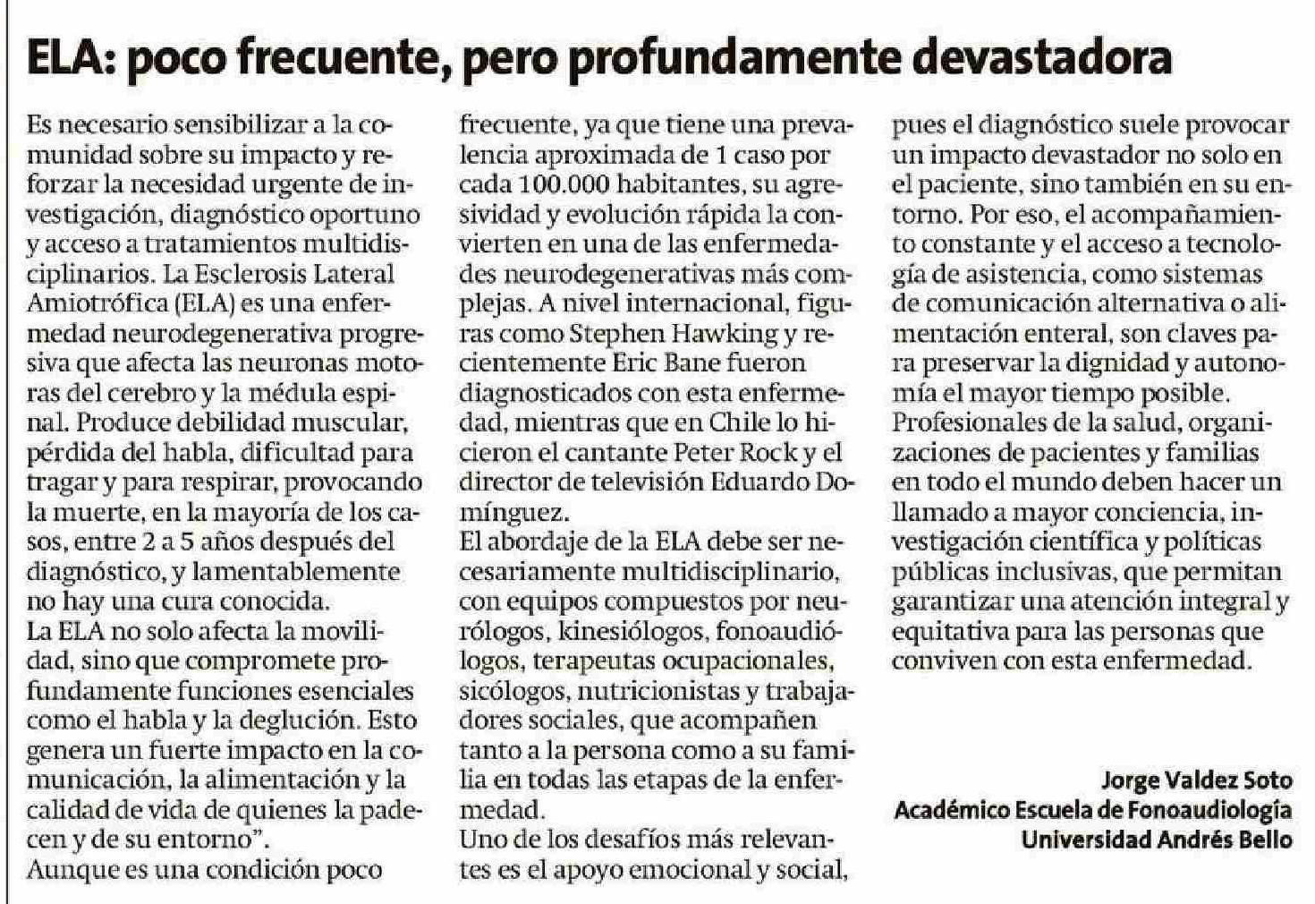 Título: ELA: poco frecuente, pero profundamente devastadora
