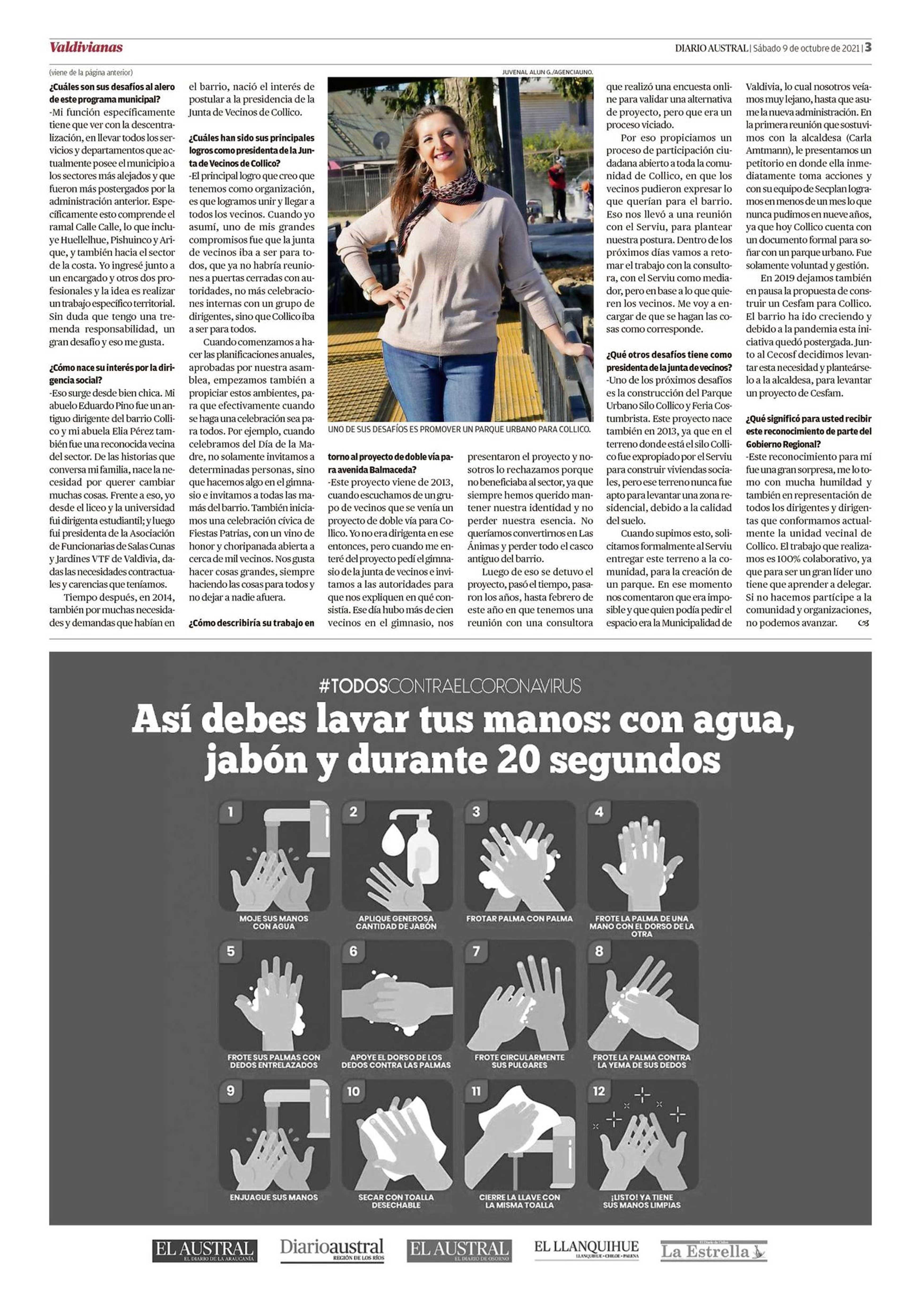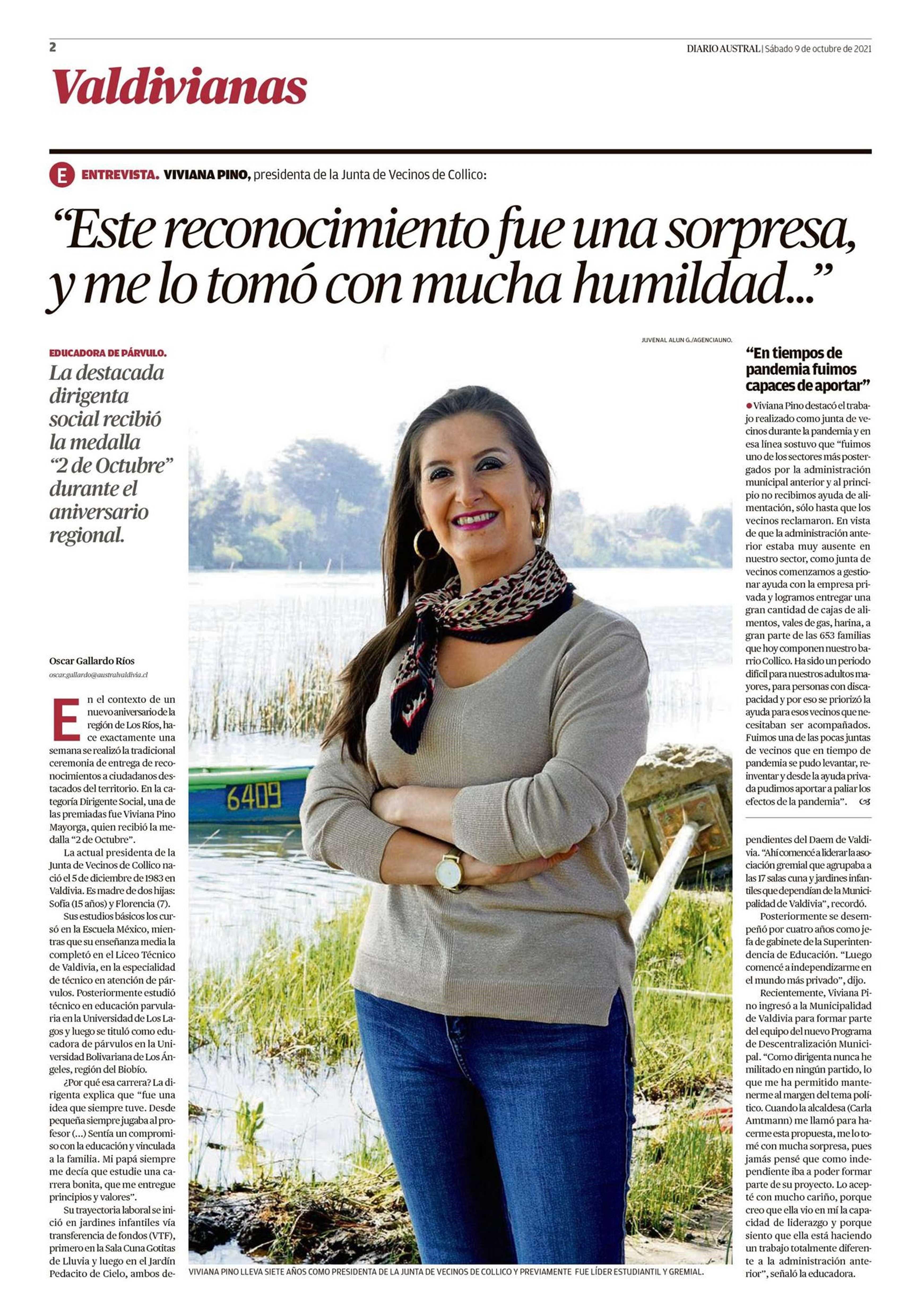 “Este reconocimiento fue una sorpresa, y me lo tomó con mucha humildad...” 09-10-2021 Diario Austral Región de Los Ríos |