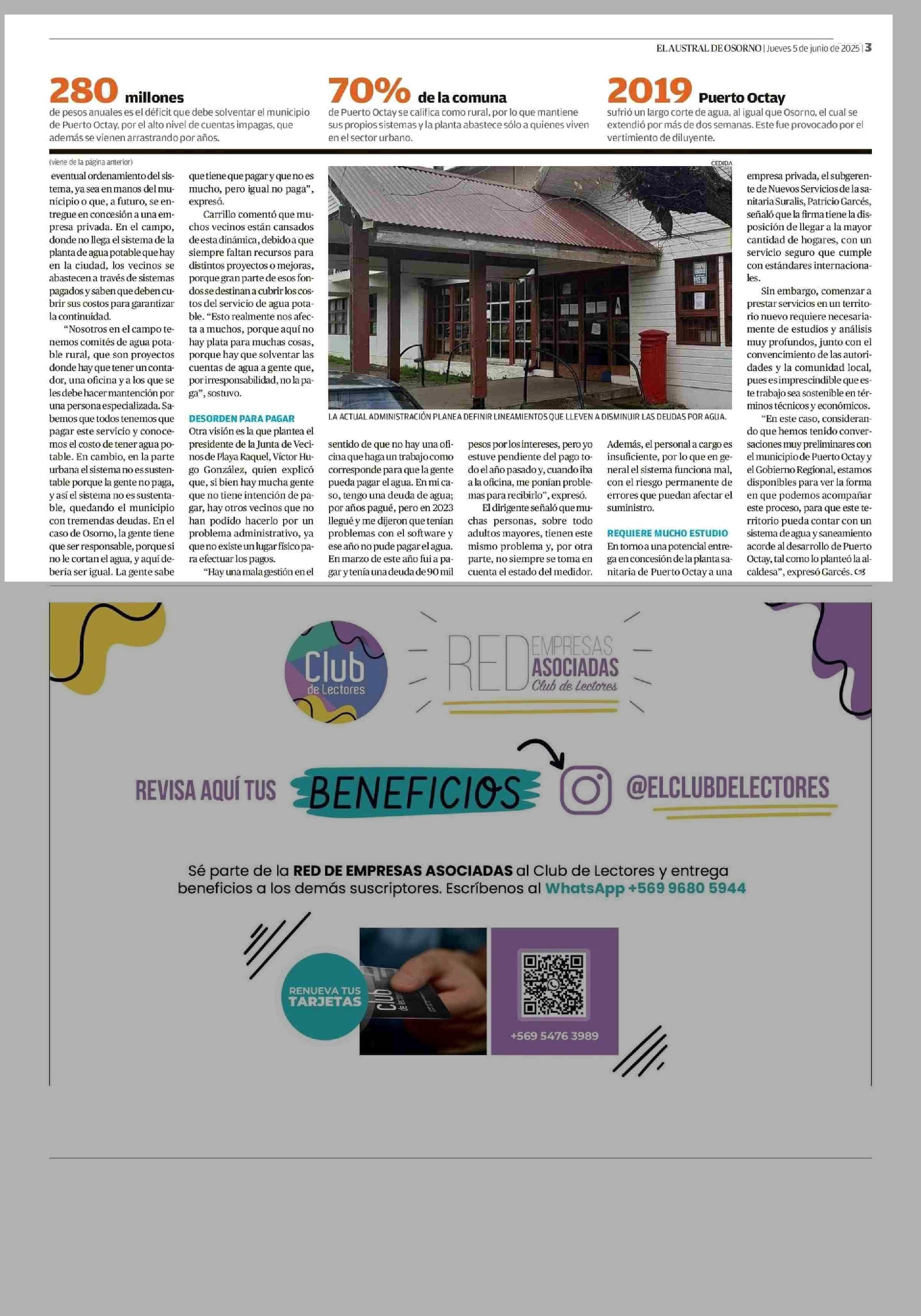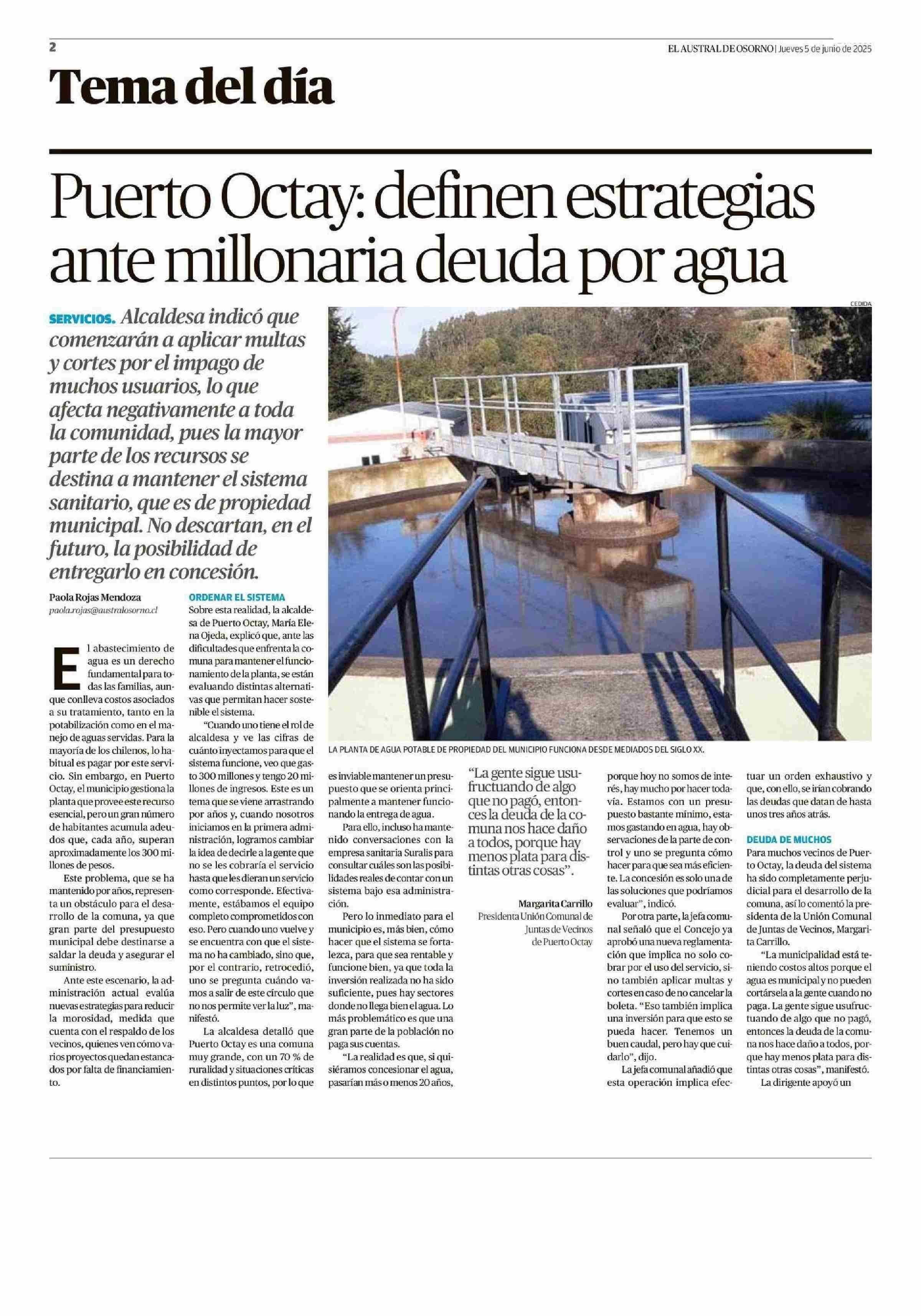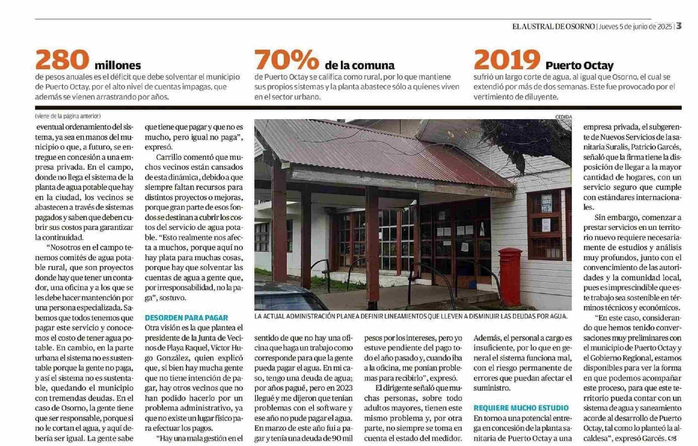 Puerto Octay: definen estrategias ante millonaria deuda por agua 05-06-2025 El Austral de Osorno |