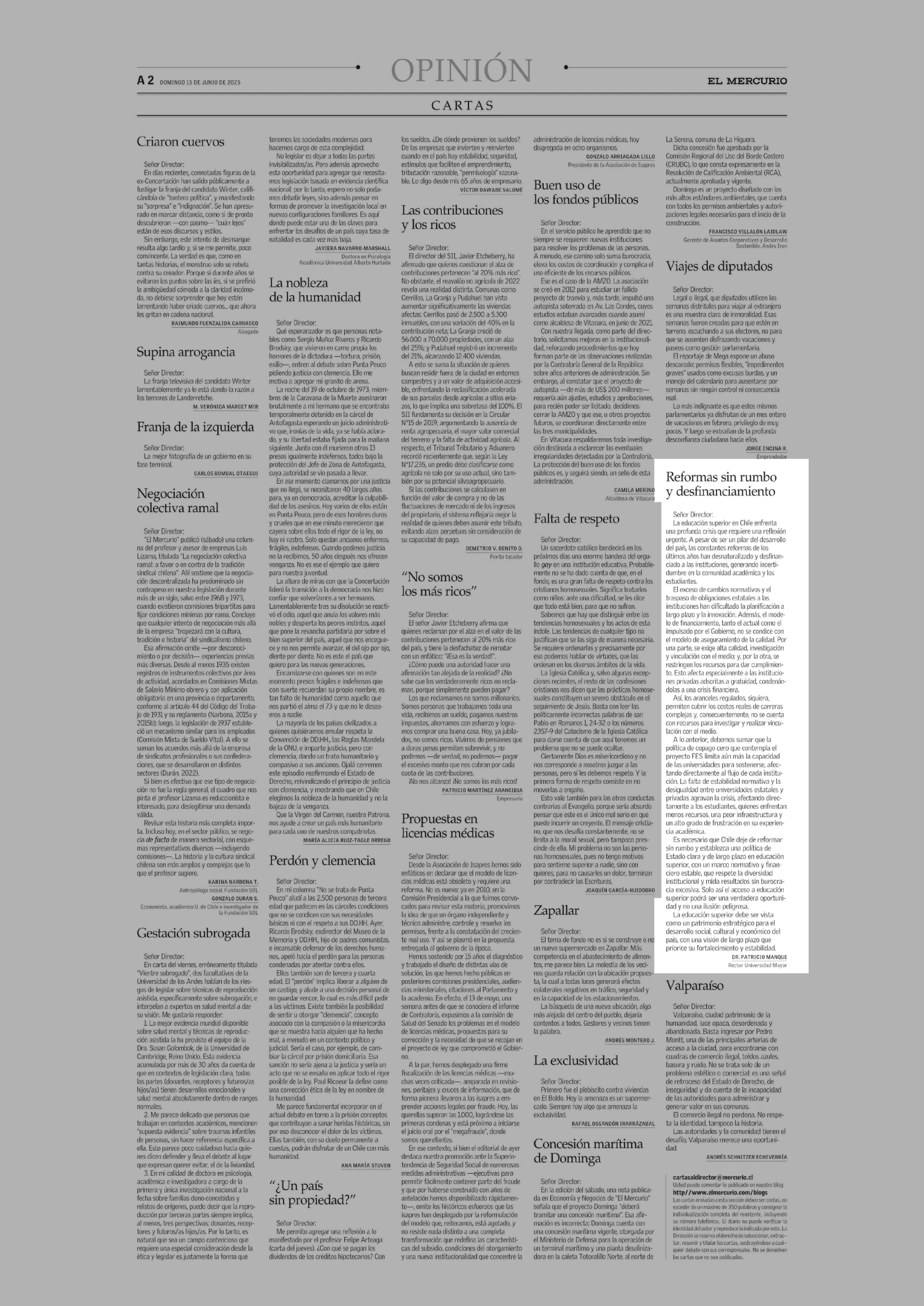 Reformas sin rumbo y desfinanciamiento 15-06-2025 El Mercurio |