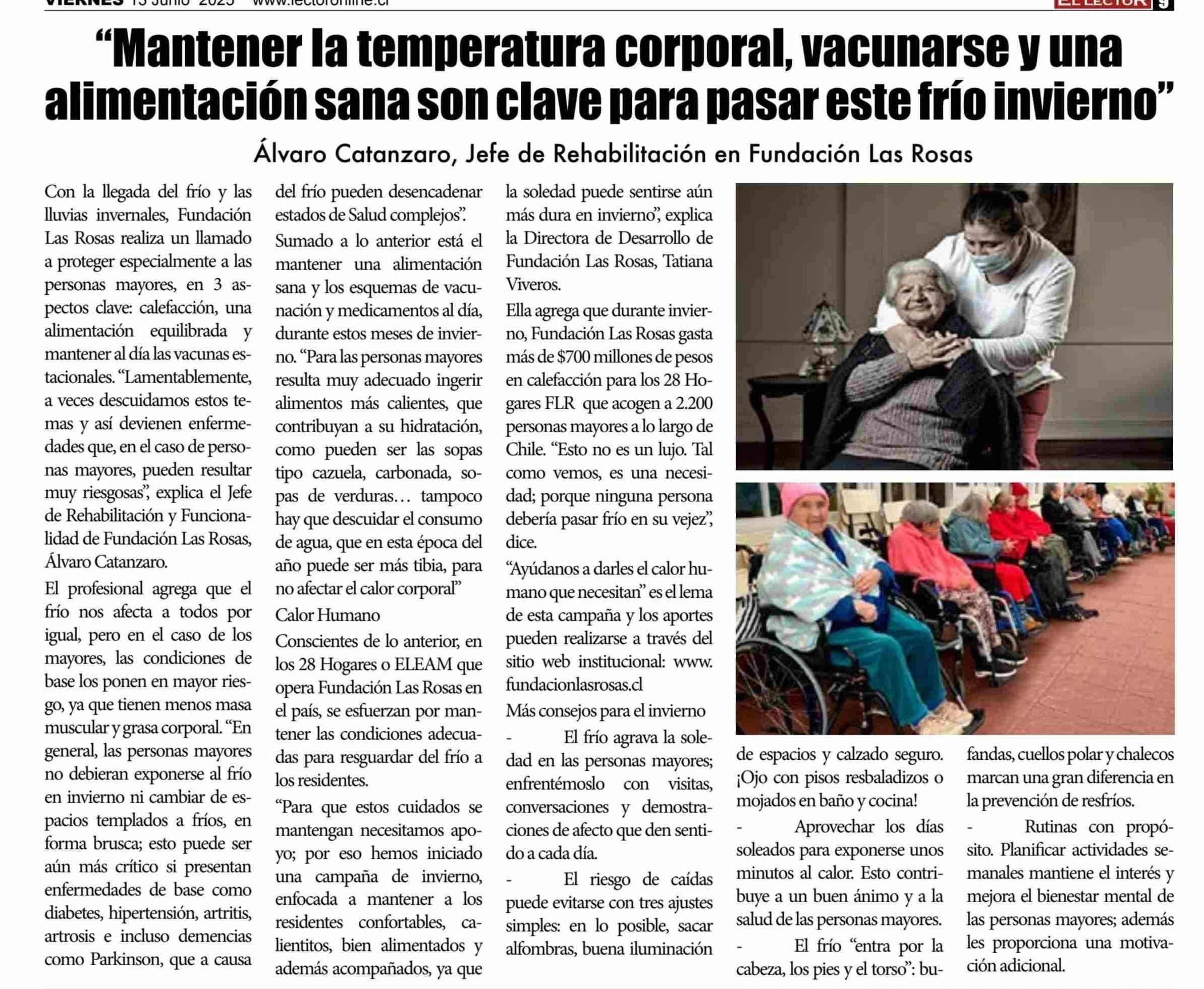 “Mantener la temperatura corporal, vacunarse y una alimentación sana son clave para pasar este frio invierno” 13-06-2025 El Lector |