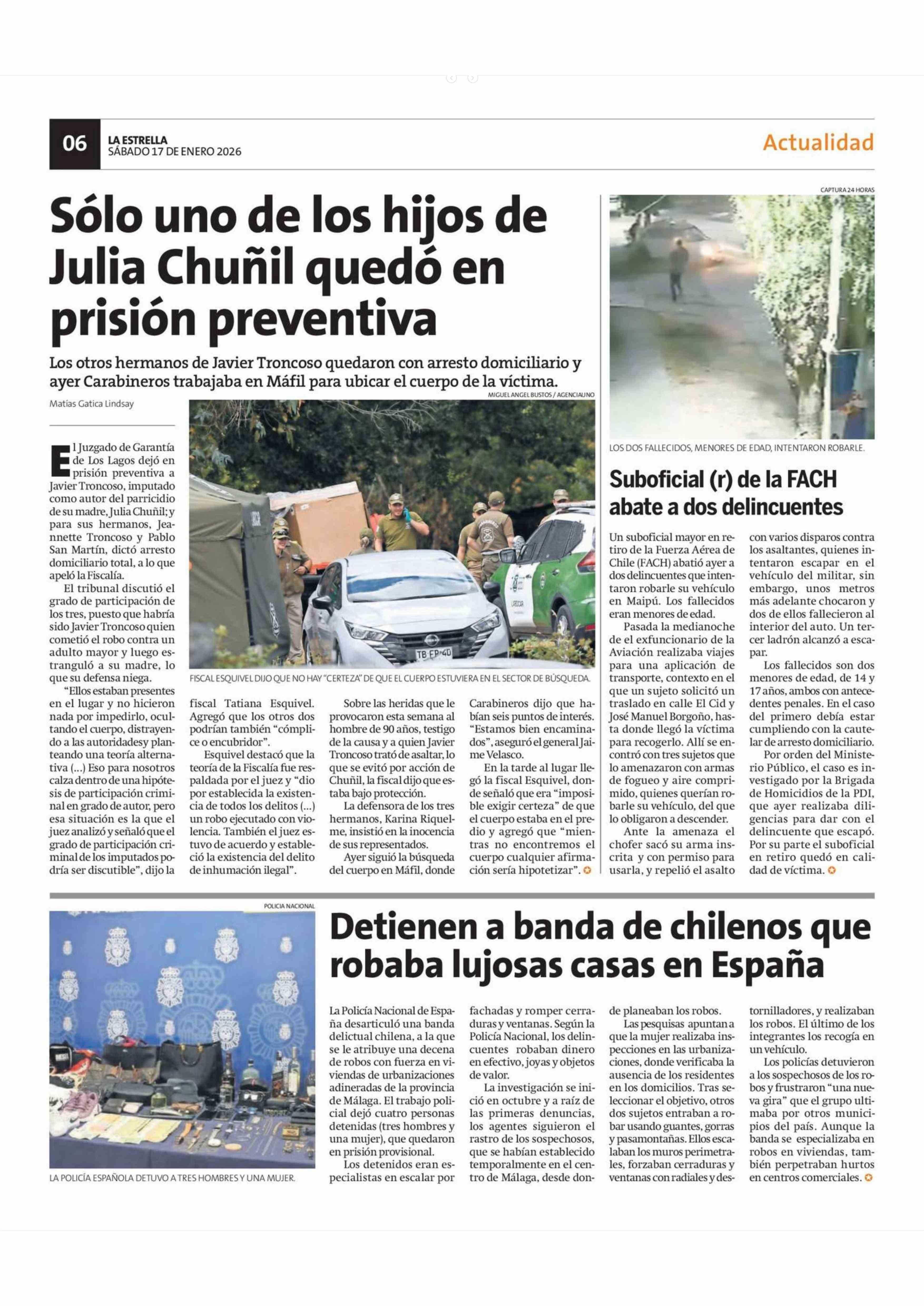Suboficial (r) de la FACH abate a dos delincuentes 17-01-2026 La Estrella de Antofagasta |