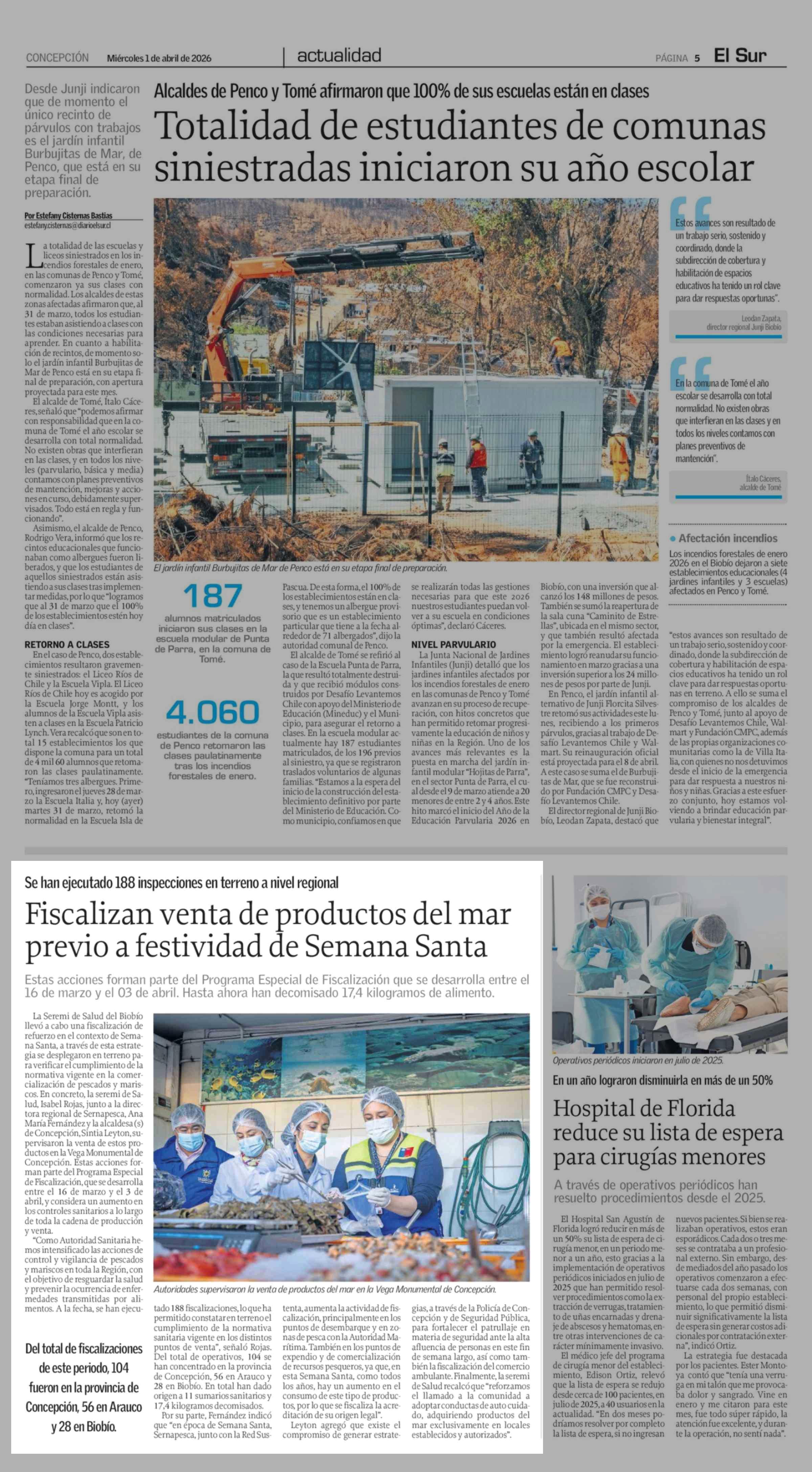 | Fecha: | 01-04-2026 | Sector: | Noticia general | Región: | Región del Bío-Bío |