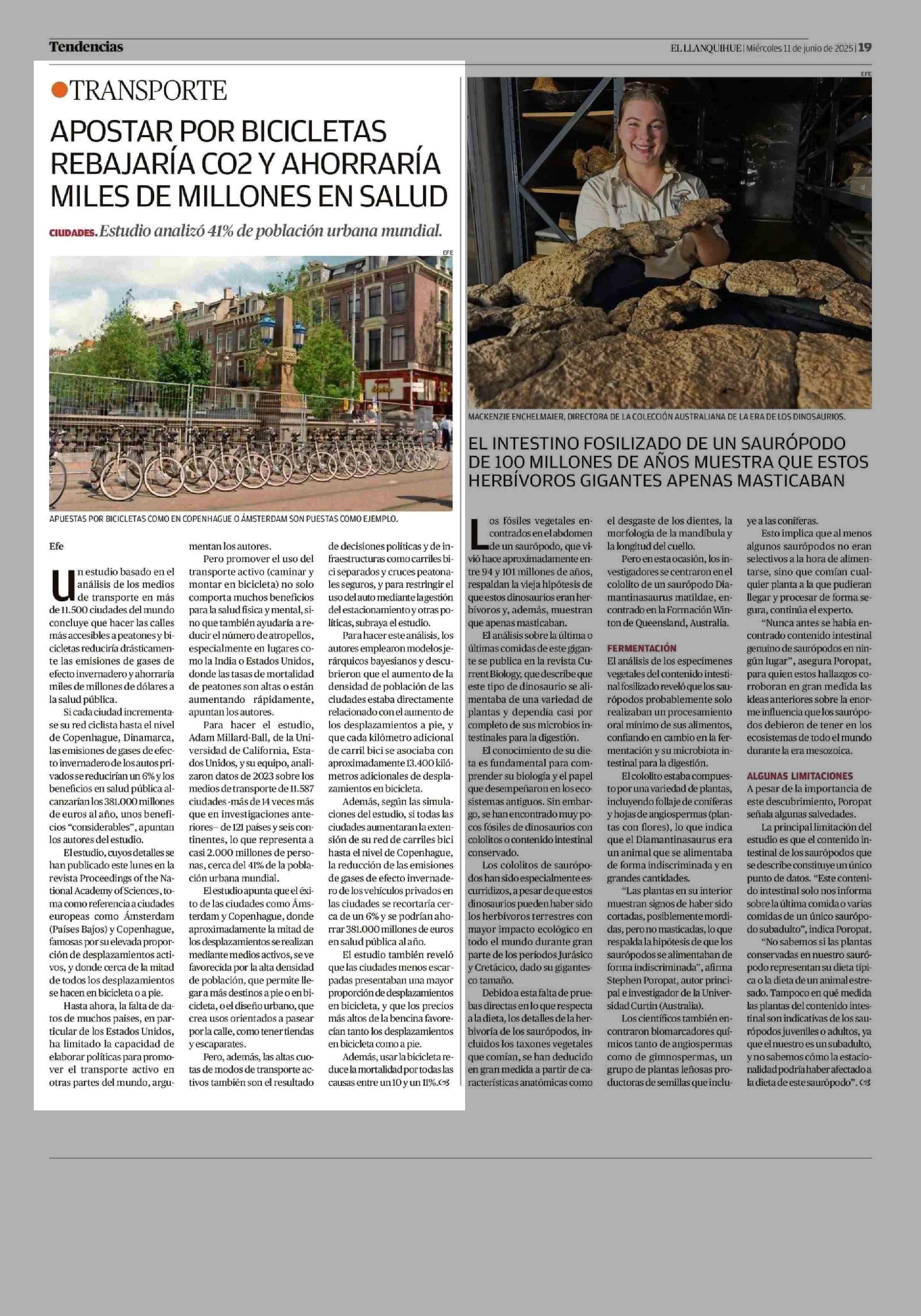 APOSTAR POR BICICLETAS REBAJARÍA CO2 Y AHORRARÍA MILES DE MILLONES EN SALUD 11-06-2025 El Llanquihue |