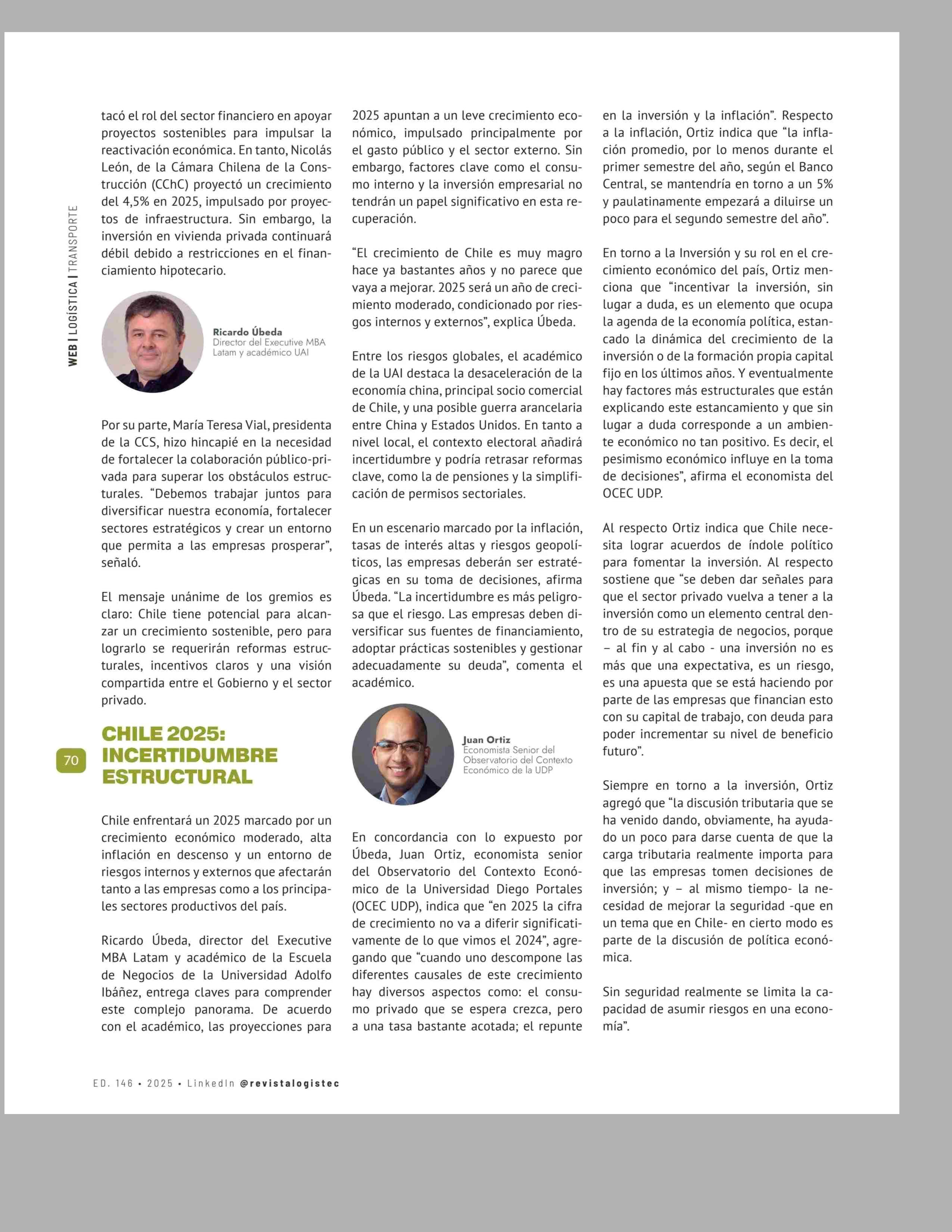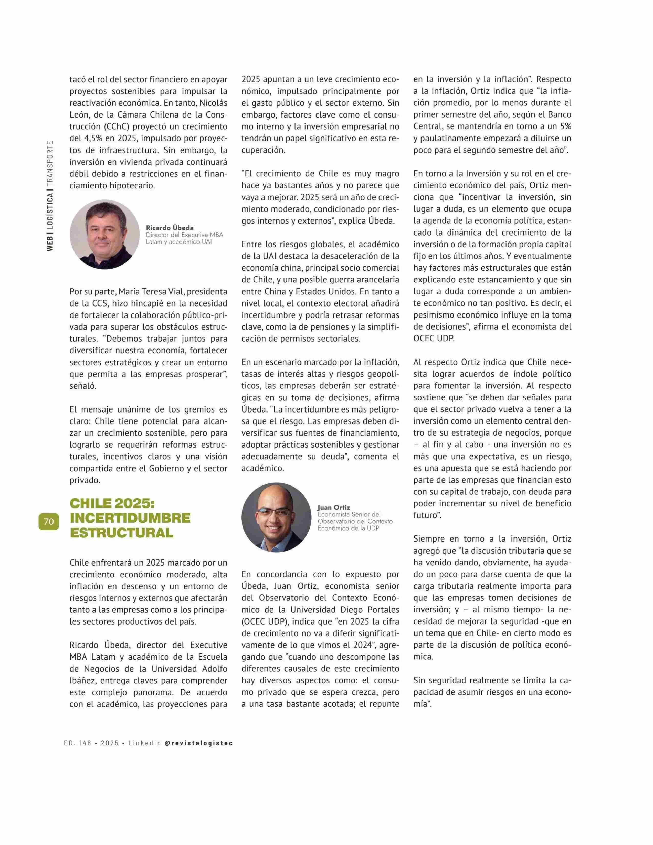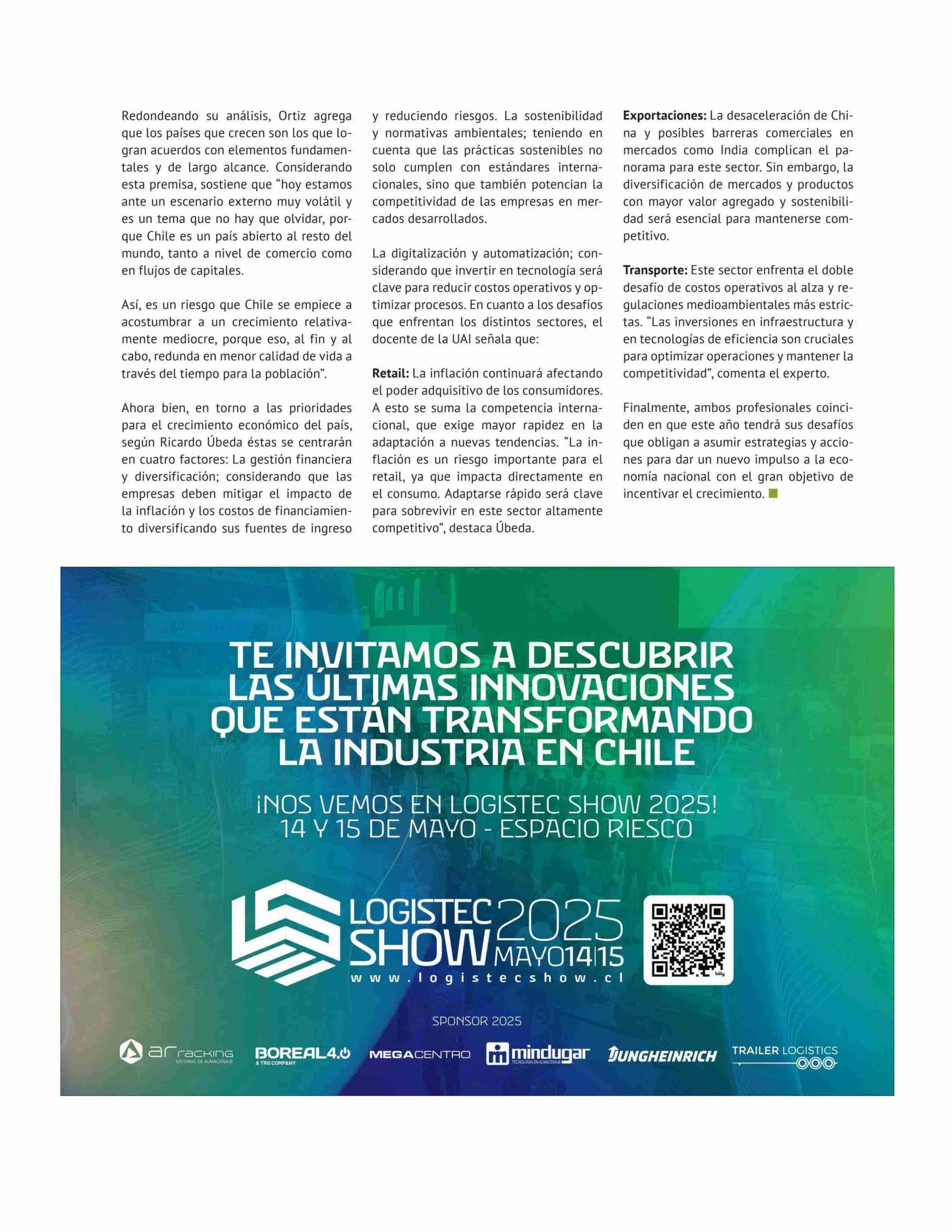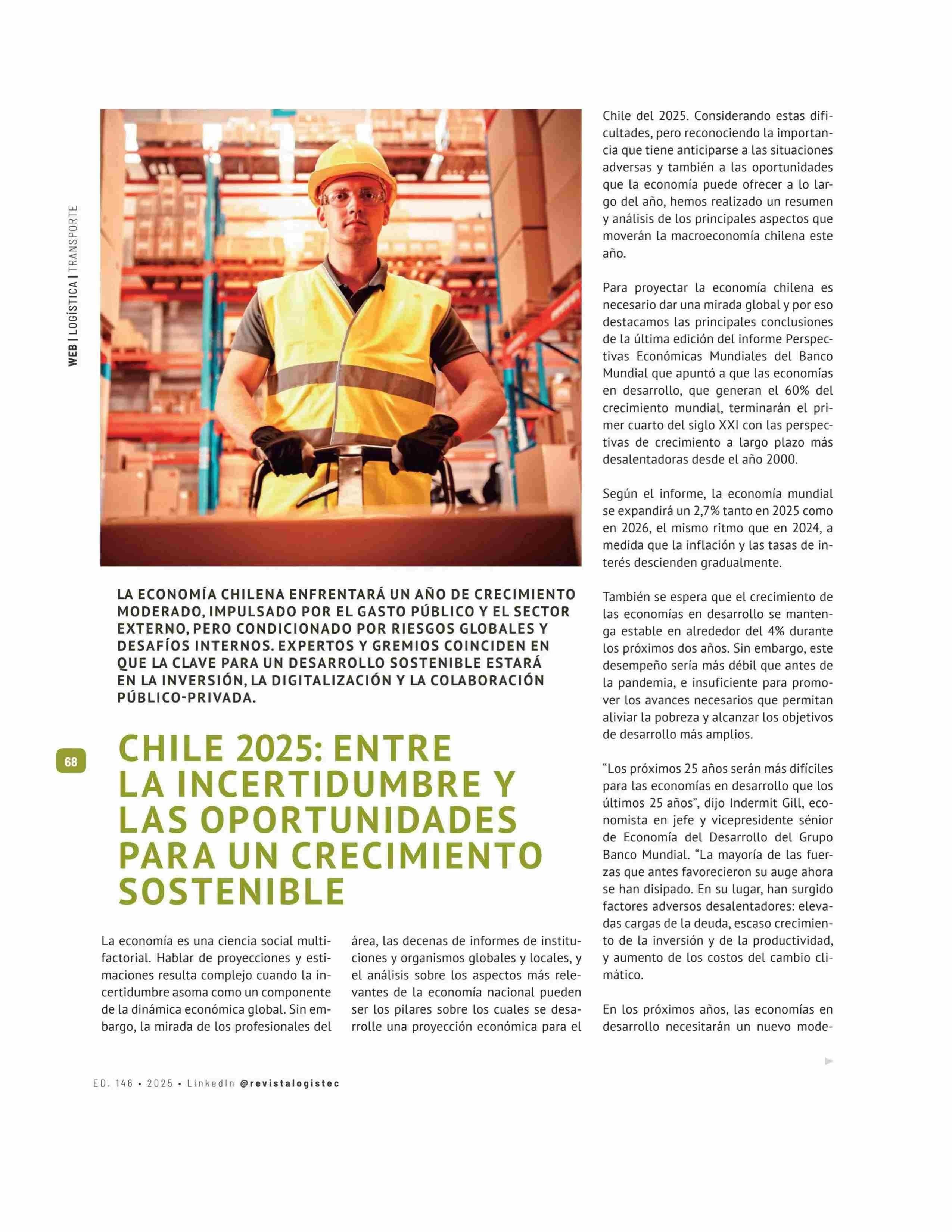 CHILE 2O25: ENTRE LA INCERTIDUMBRE Y LAS OPORTUNIDADES PARA UN CRECIMIENTO SOSTENIBLE 12-03-2025 Revista Logistec |