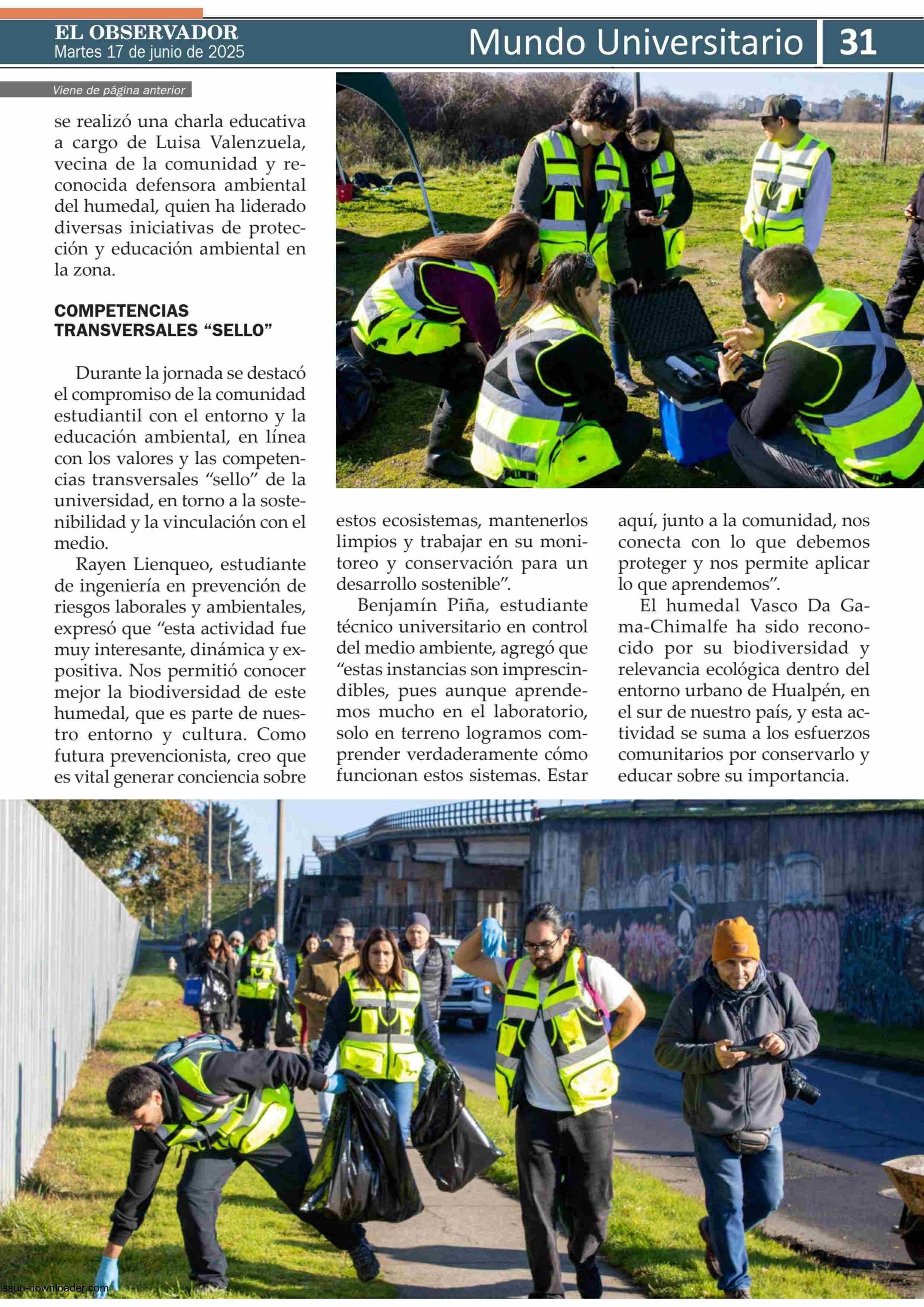 Estudiantesde la USM lideraron limpieza en el humedal de la región del Biobío 17-06-2025 El Observador |