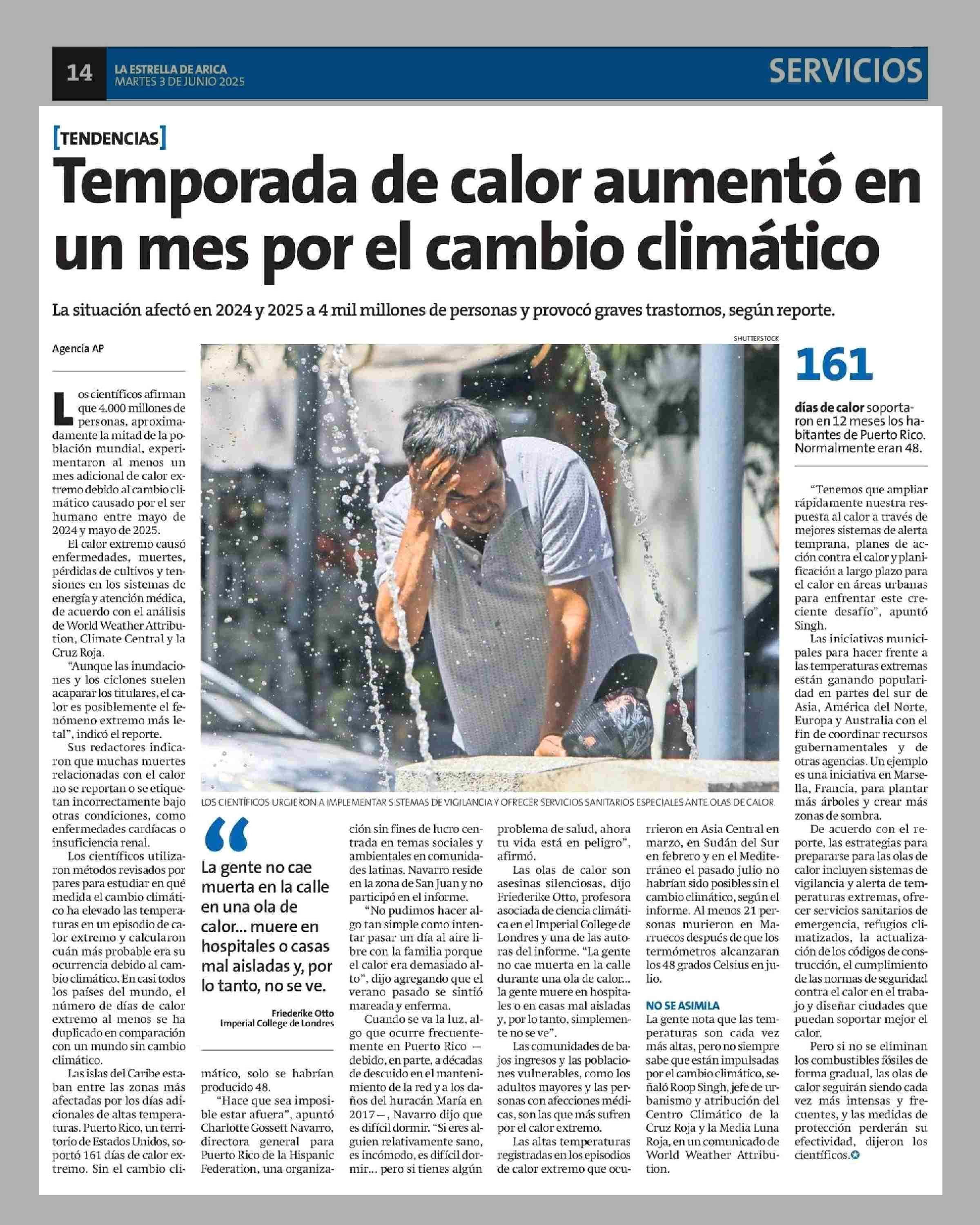 Temporada de calor aumentó en un mes por el cambio climático 03-06-2025 La Estrella de Arica |
