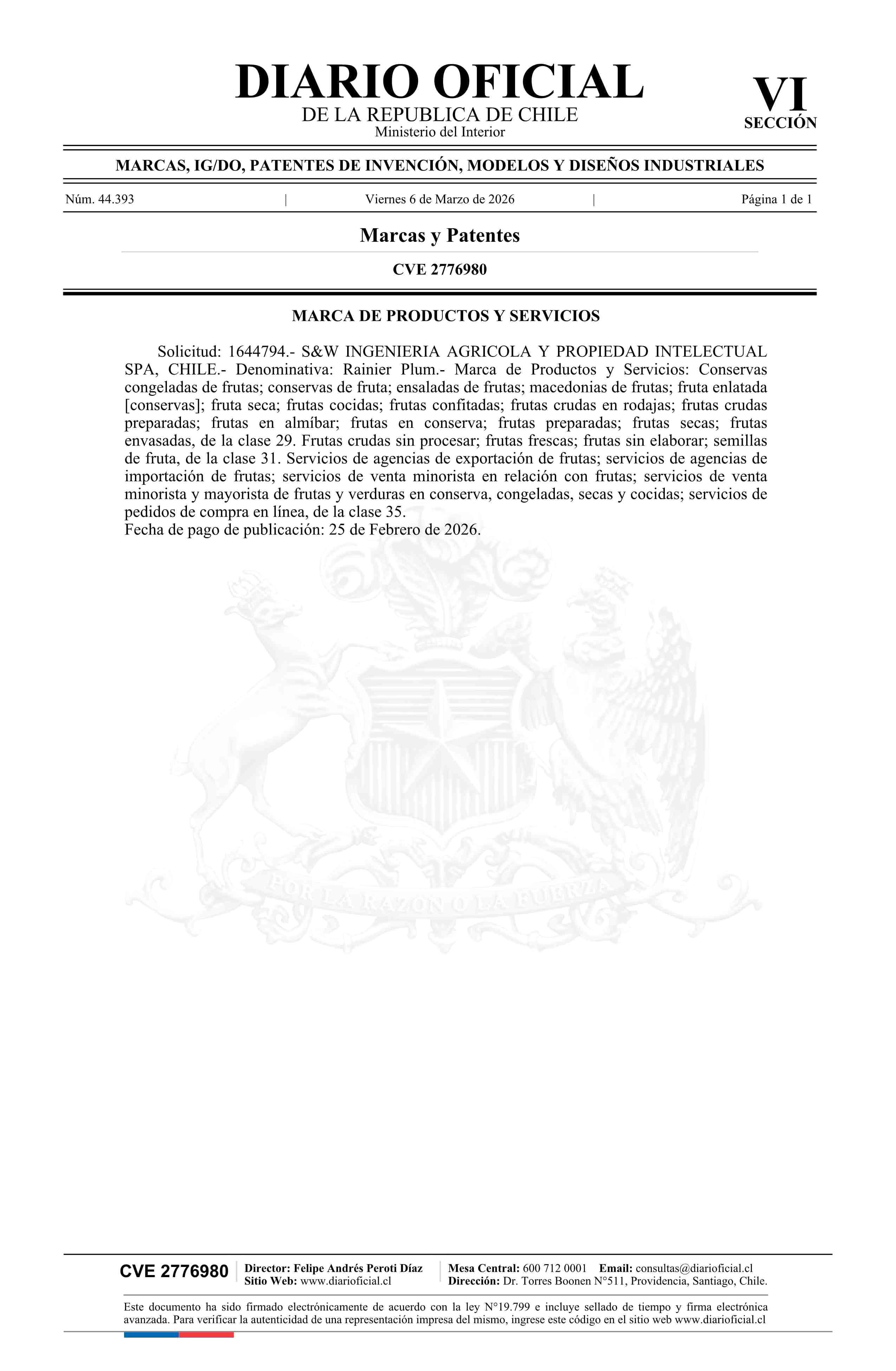 Fuente: Diario Oficial Edición Electrónica (Diario Oficial de Chile - 6 Marcas Y Patentes) Página(s): 75