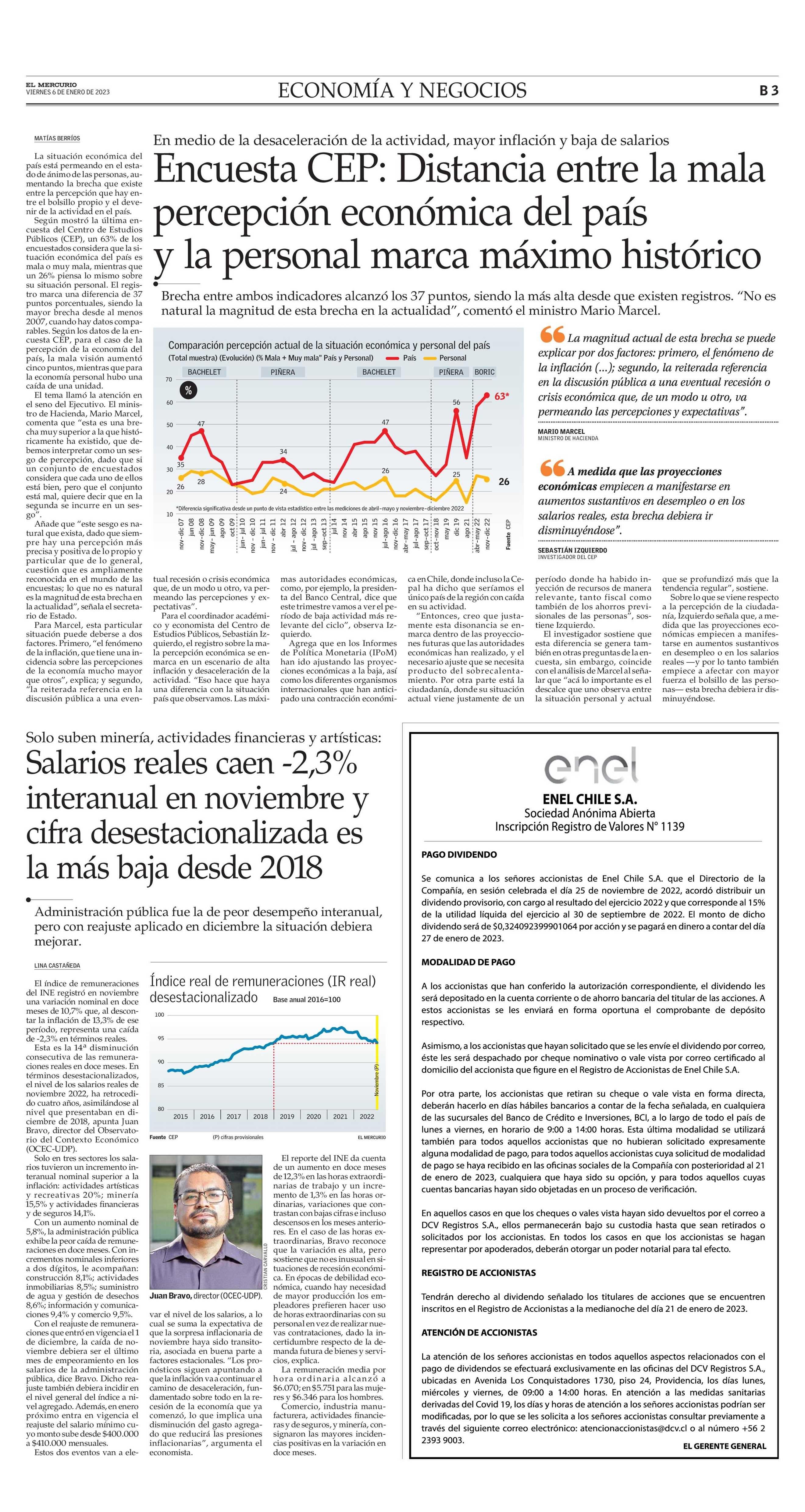 Encuesta CEP: Distancia entre la mala percepción económica del país y la personal marca máximo histórico 06-01-2023 El Mercurio |