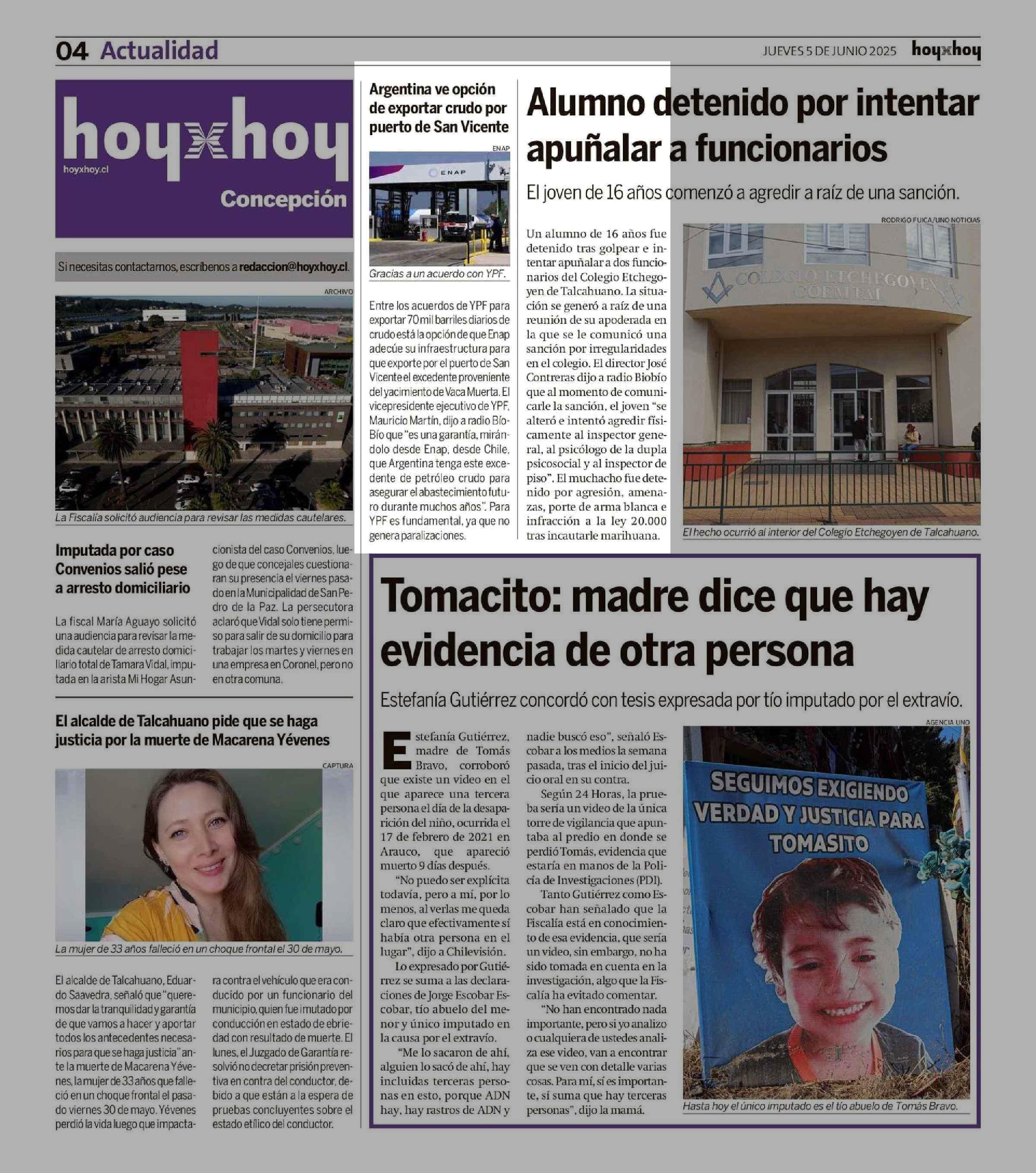 | Fuente: | Hoy x Hoy Concepción (Hoy x Hoy Concepción) | Página(s): | 4 |